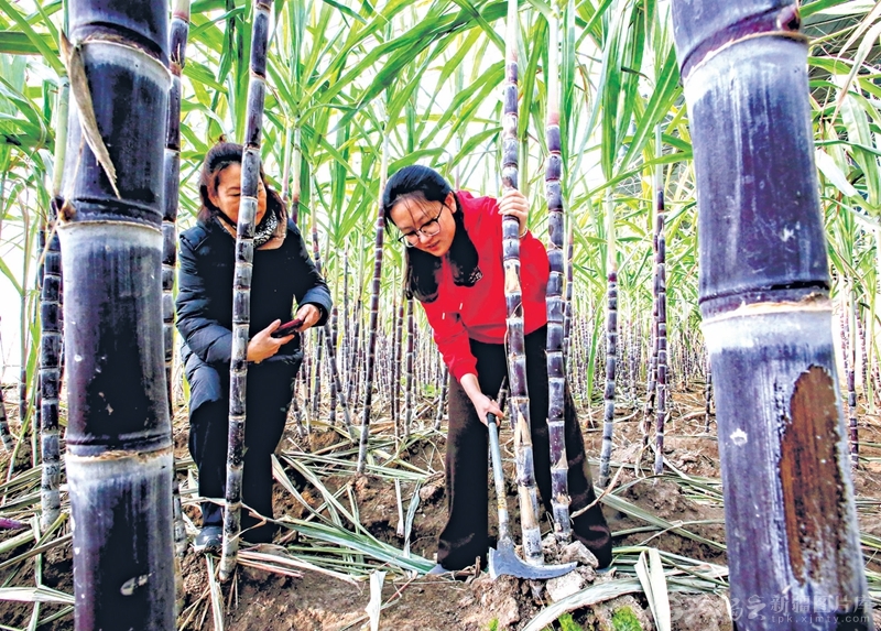 1月18日,游客在哈密市伊州区陶家宫镇陶家宫村甘蔗大棚里砍甘蔗。目前,哈密市已成功种植芒果、沃柑、枇杷等10多种南方水果。 □石榴云/新疆日报记者 蔡增乐摄