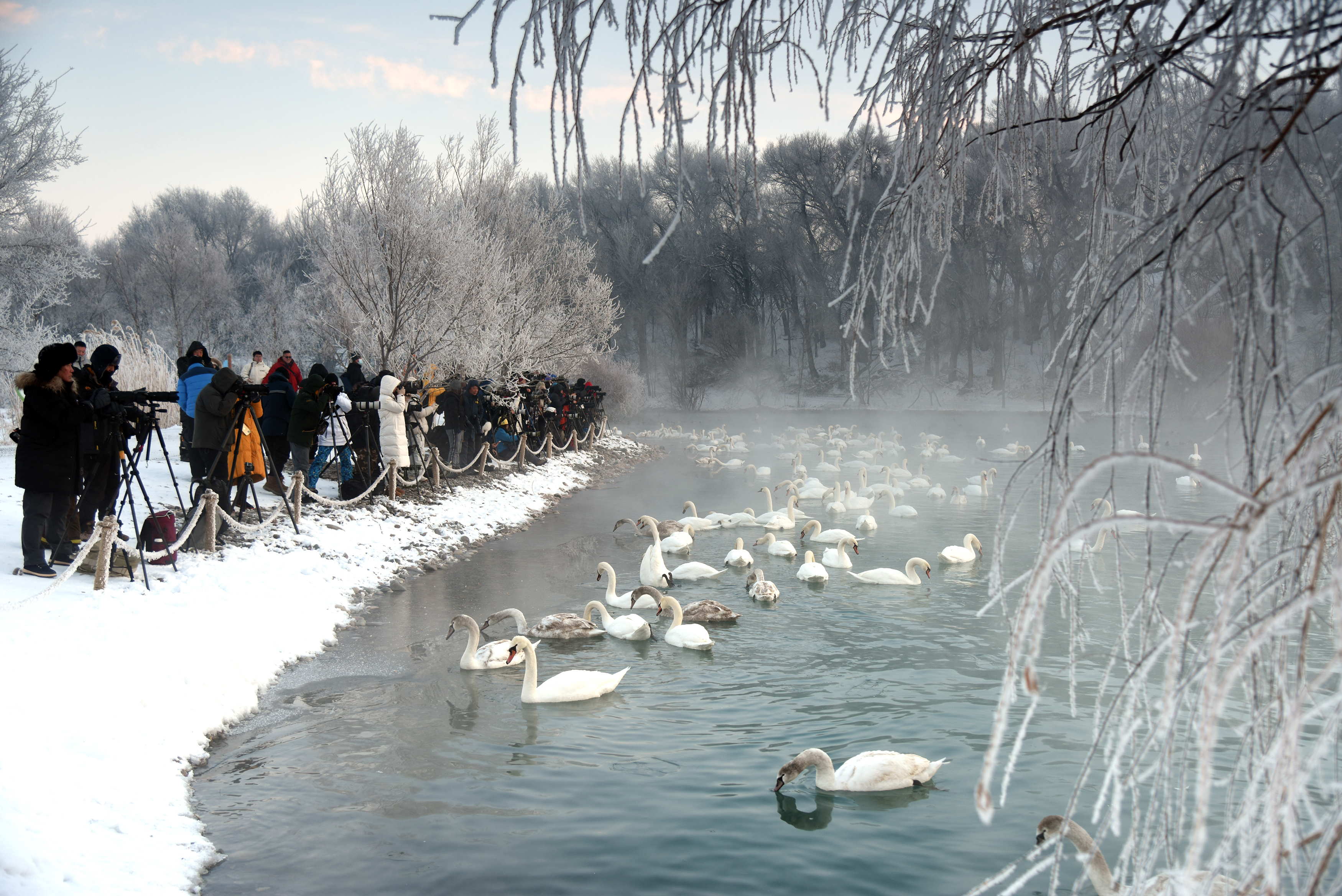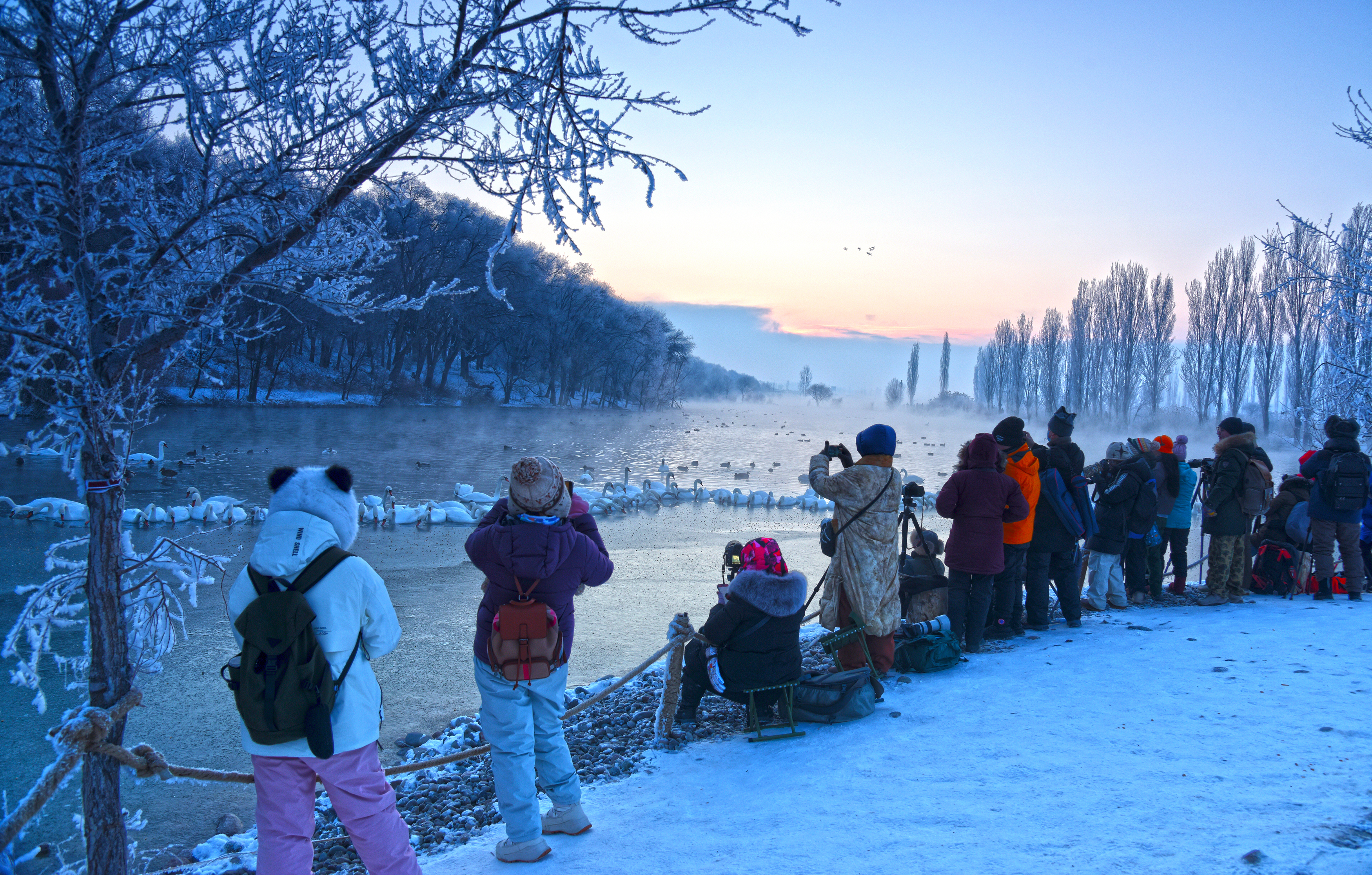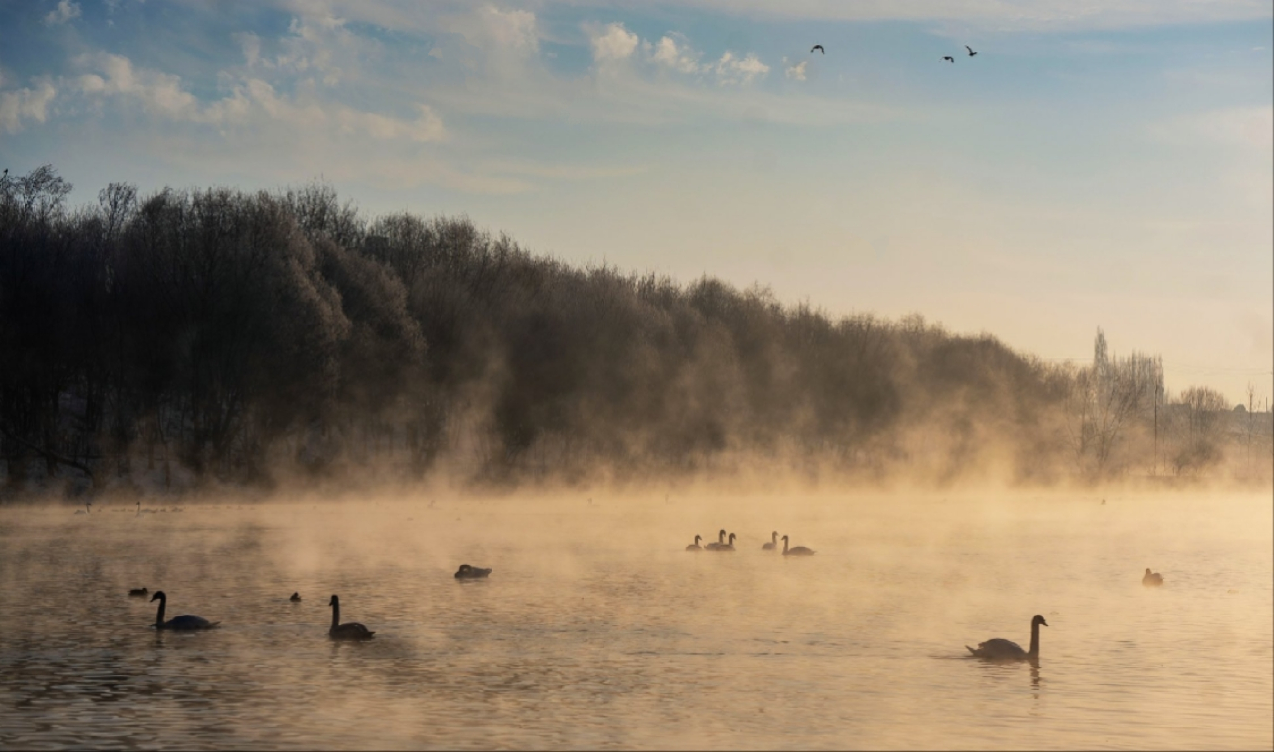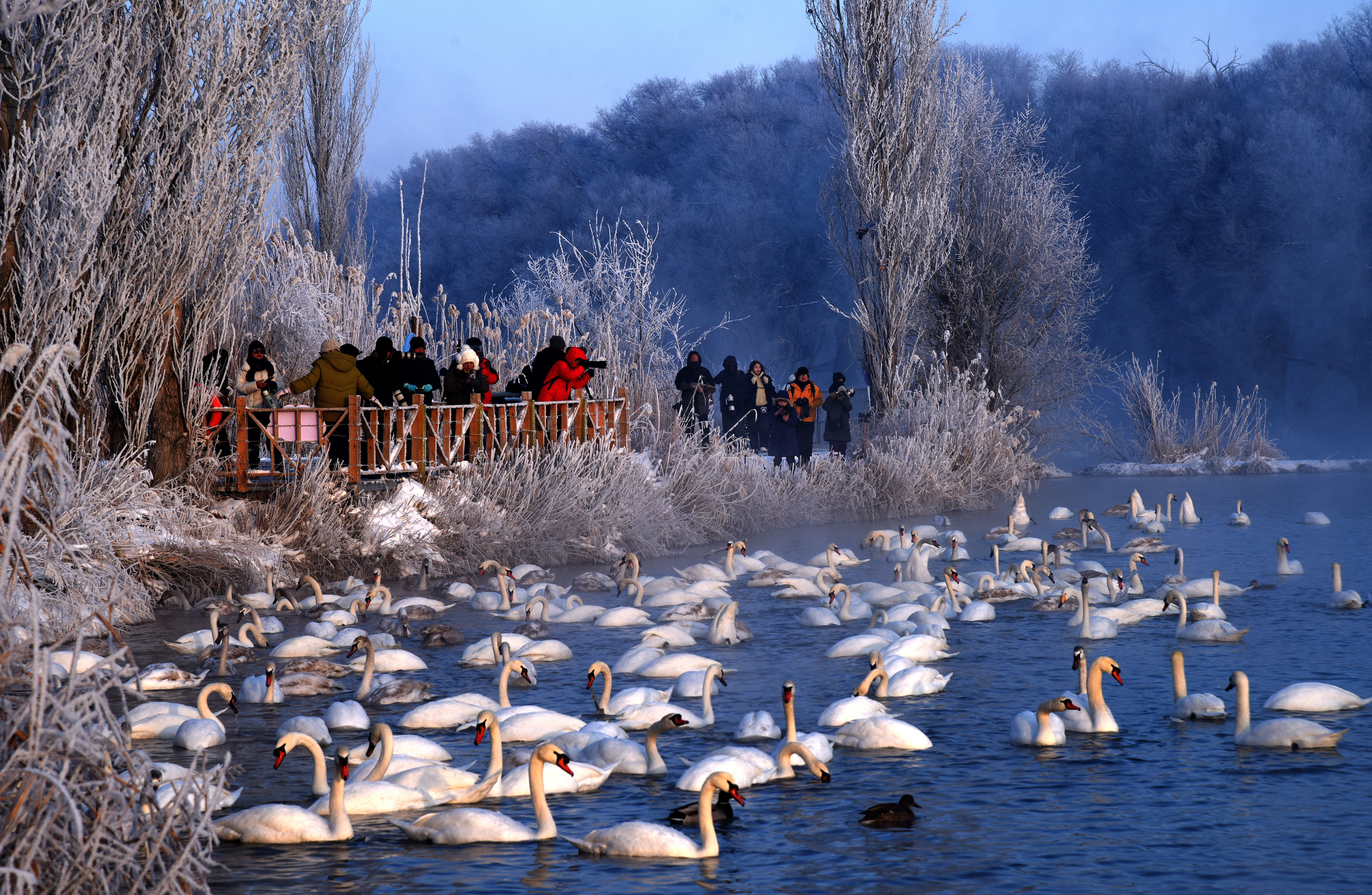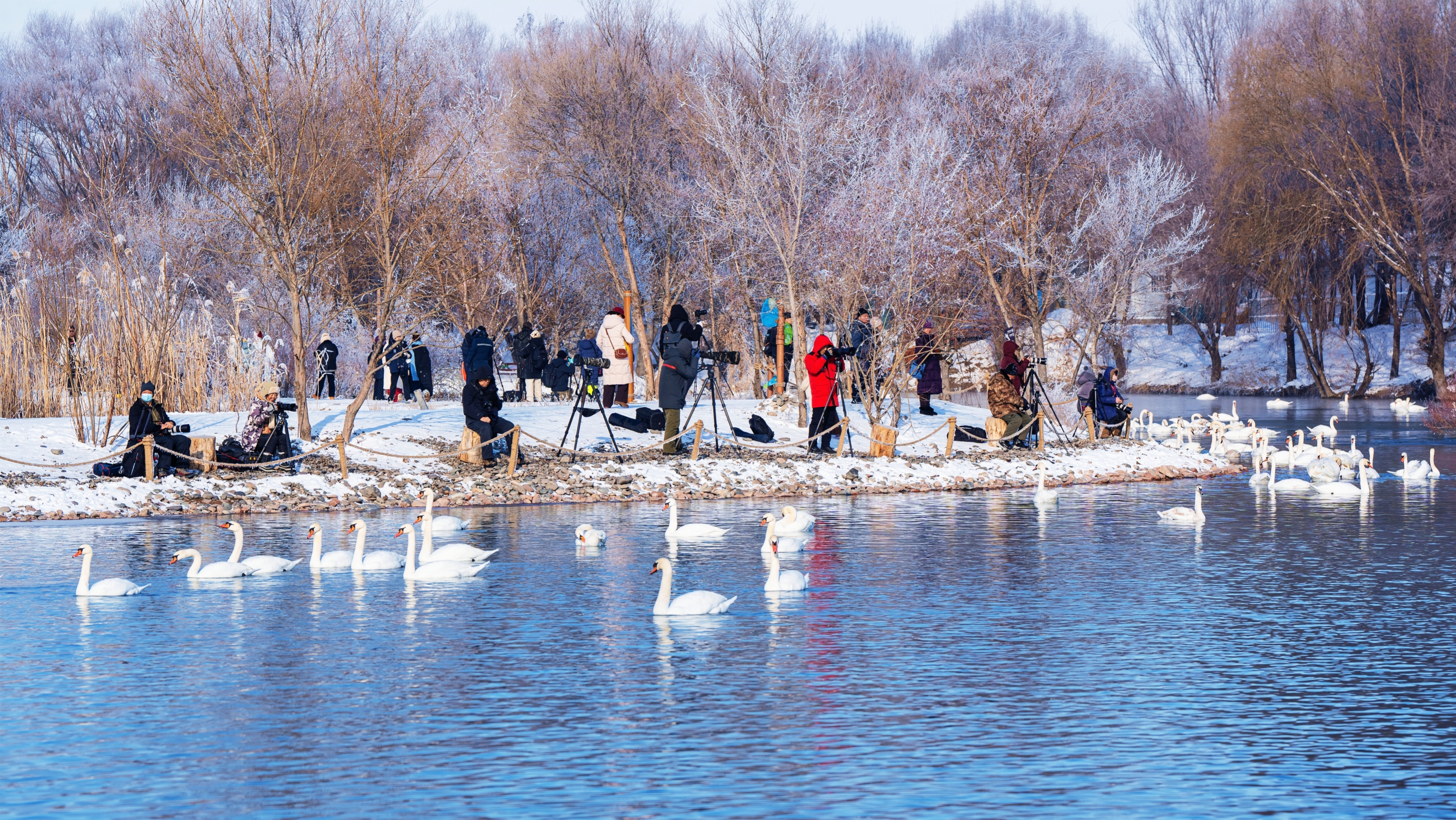 一年又一年,韩新林和越来越多的村民自发爱护天鹅,当地也逐步建立起保护机制,来这里过冬的天鹅从最初的一家五口,增加到如今超过1000只的庞大家庭。每年冬季,它们从远方如期而至,与这里的雾凇、晨雾和霞光,共同绘就一幅生命与自然相守的温暖画卷。