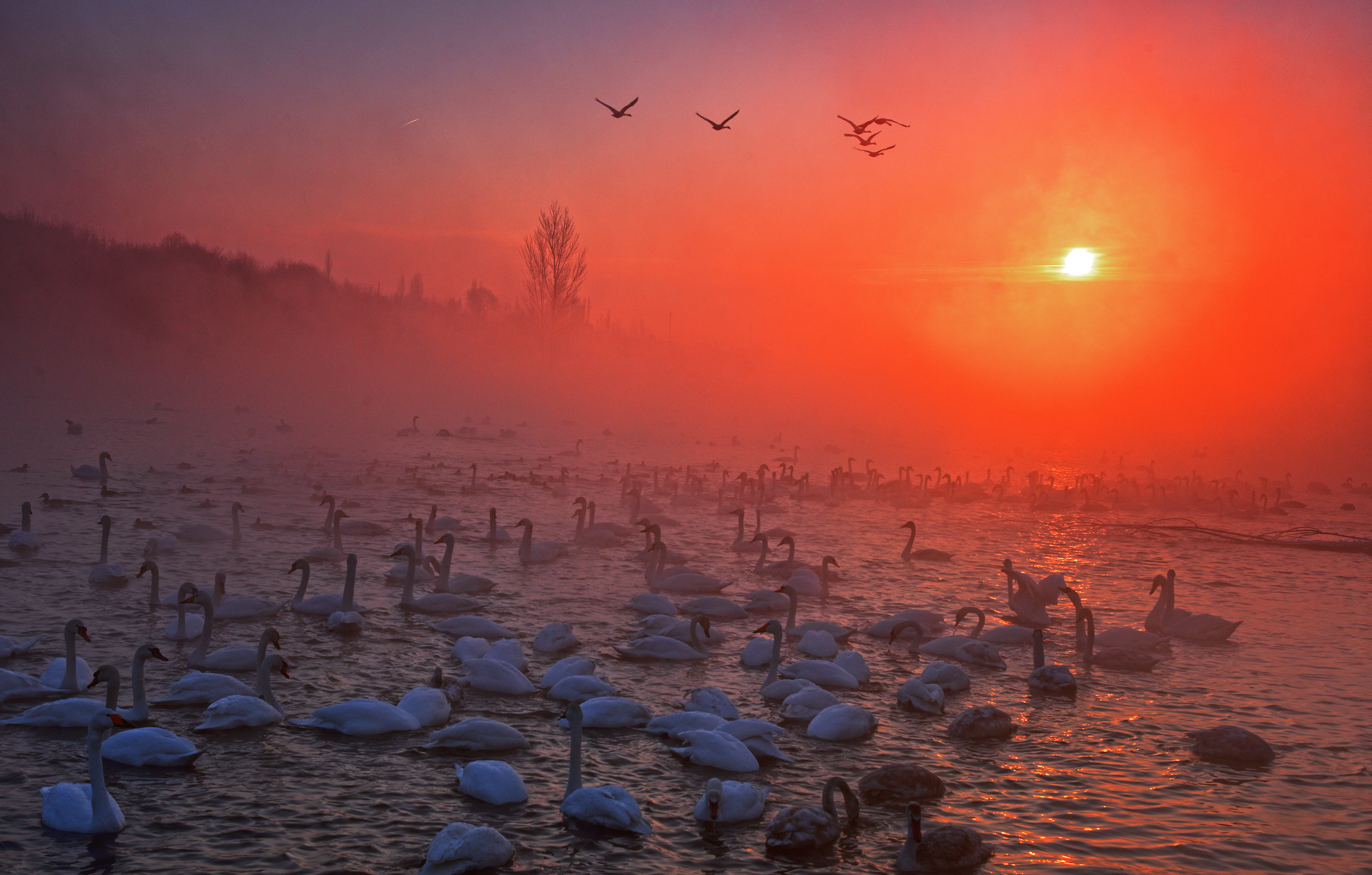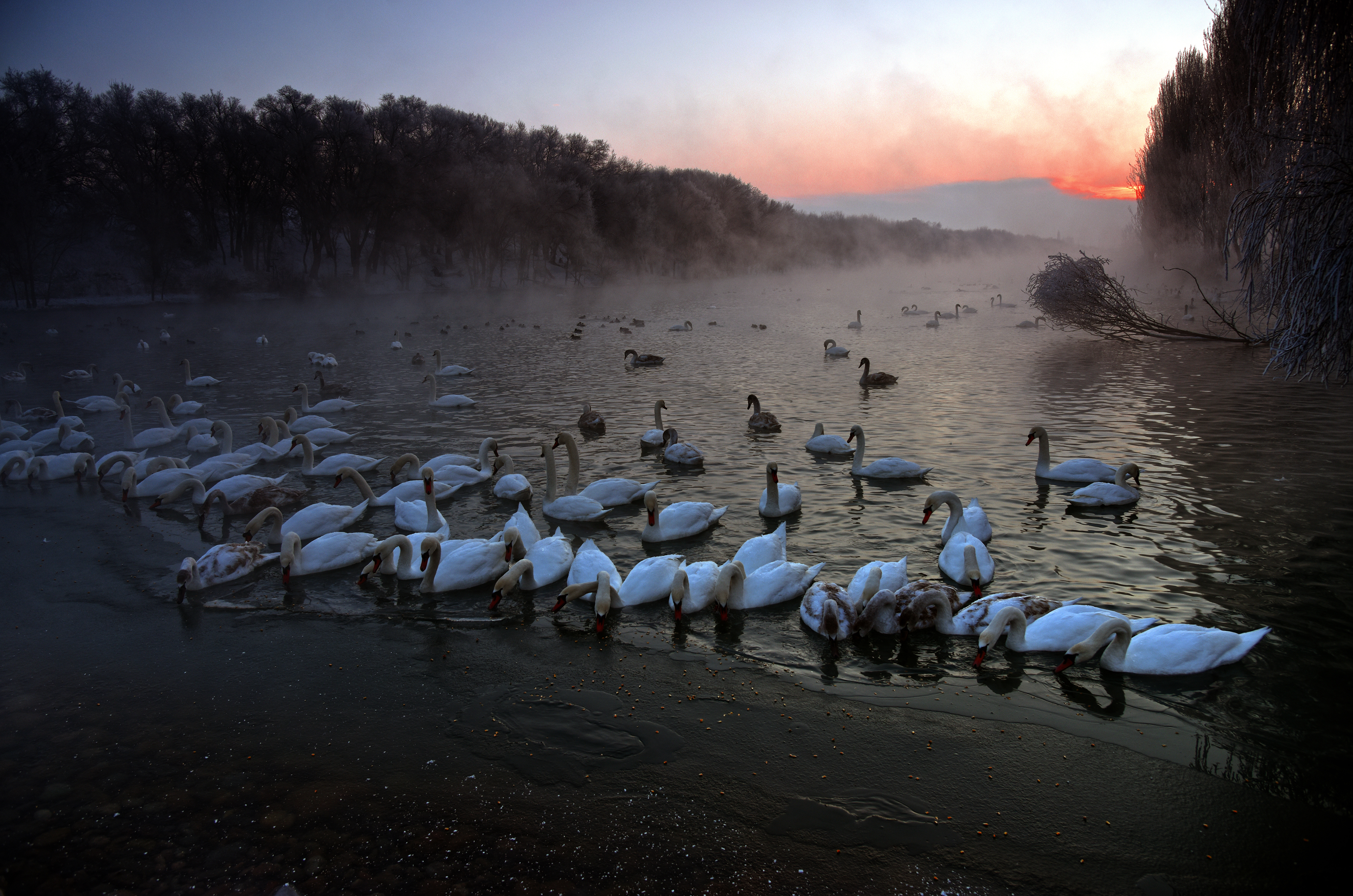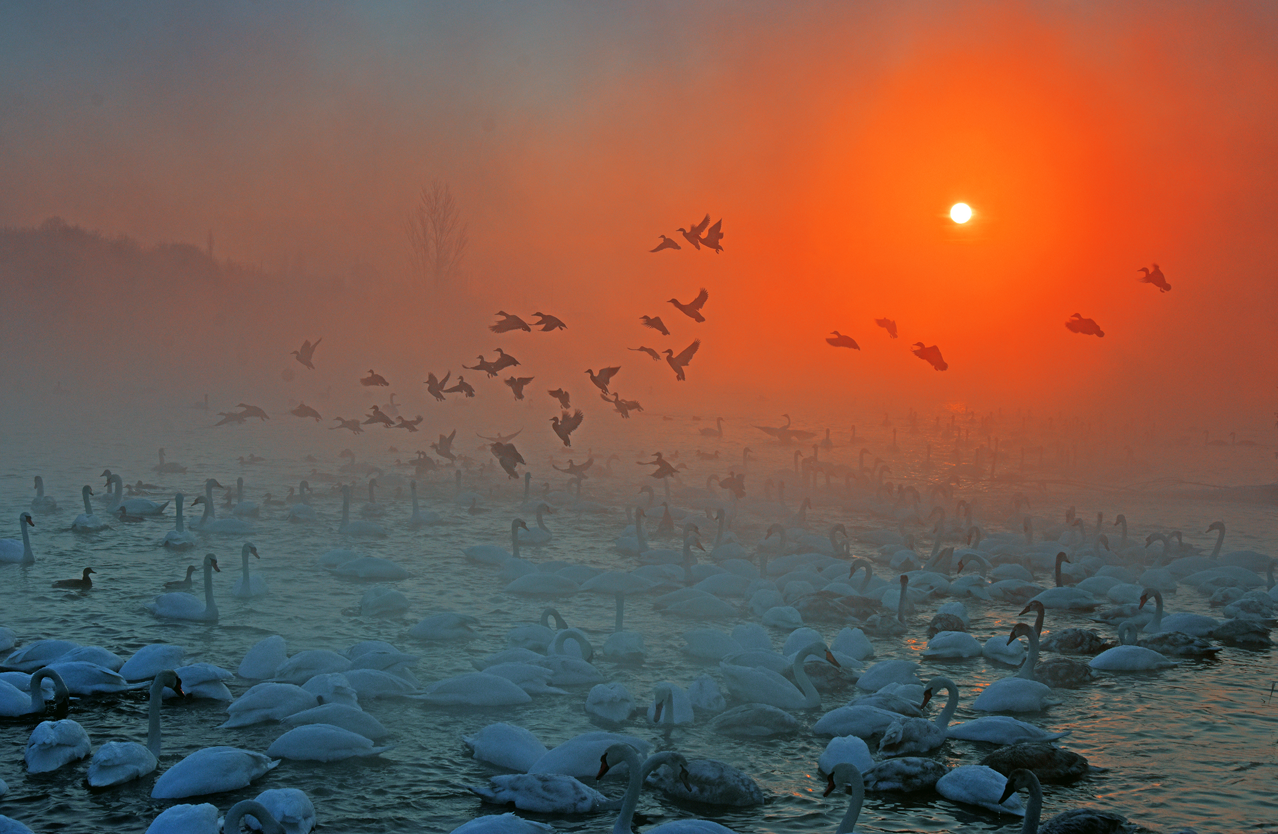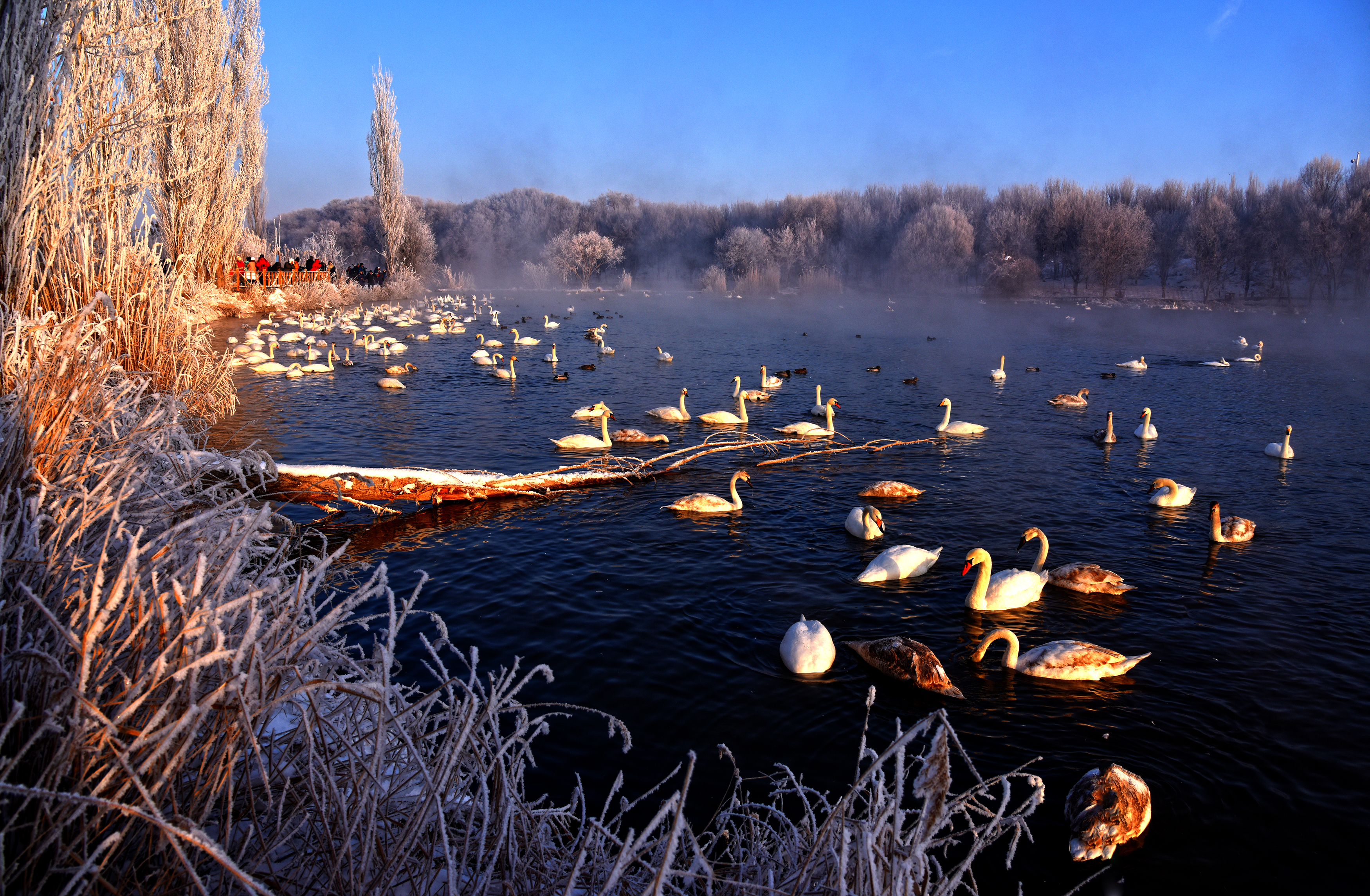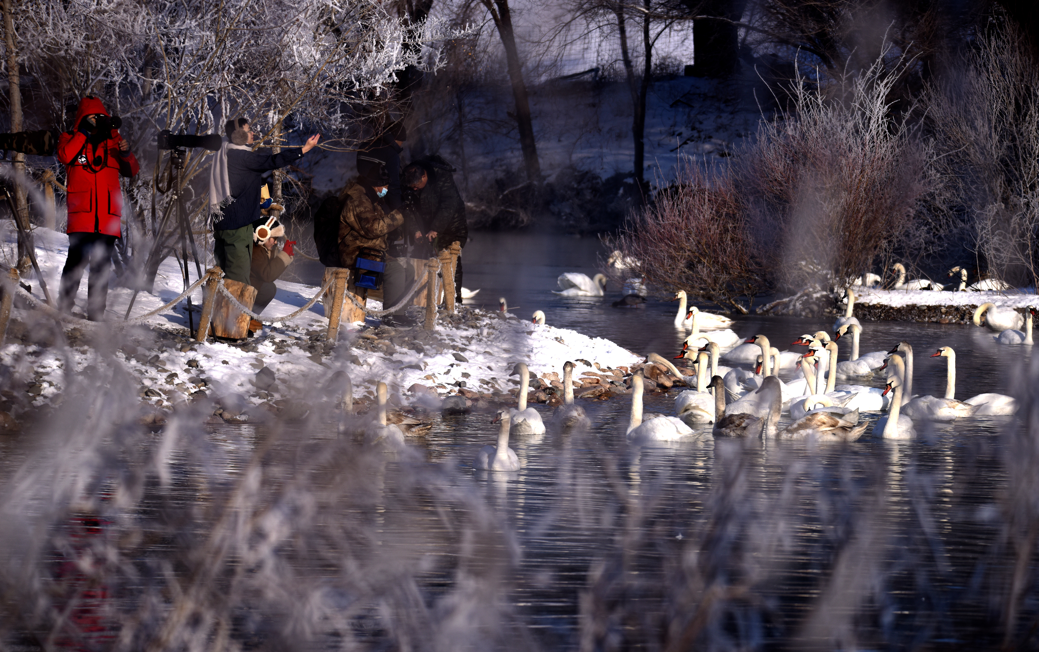 一年又一年,韩新林和越来越多的村民自发爱护天鹅,当地也逐步建立起保护机制,来这里过冬的天鹅从最初的一家五口,增加到如今超过1000只的庞大家庭。每年冬季,它们从远方如期而至,与这里的雾凇、晨雾和霞光,共同绘就一幅生命与自然相守的温暖画卷。
