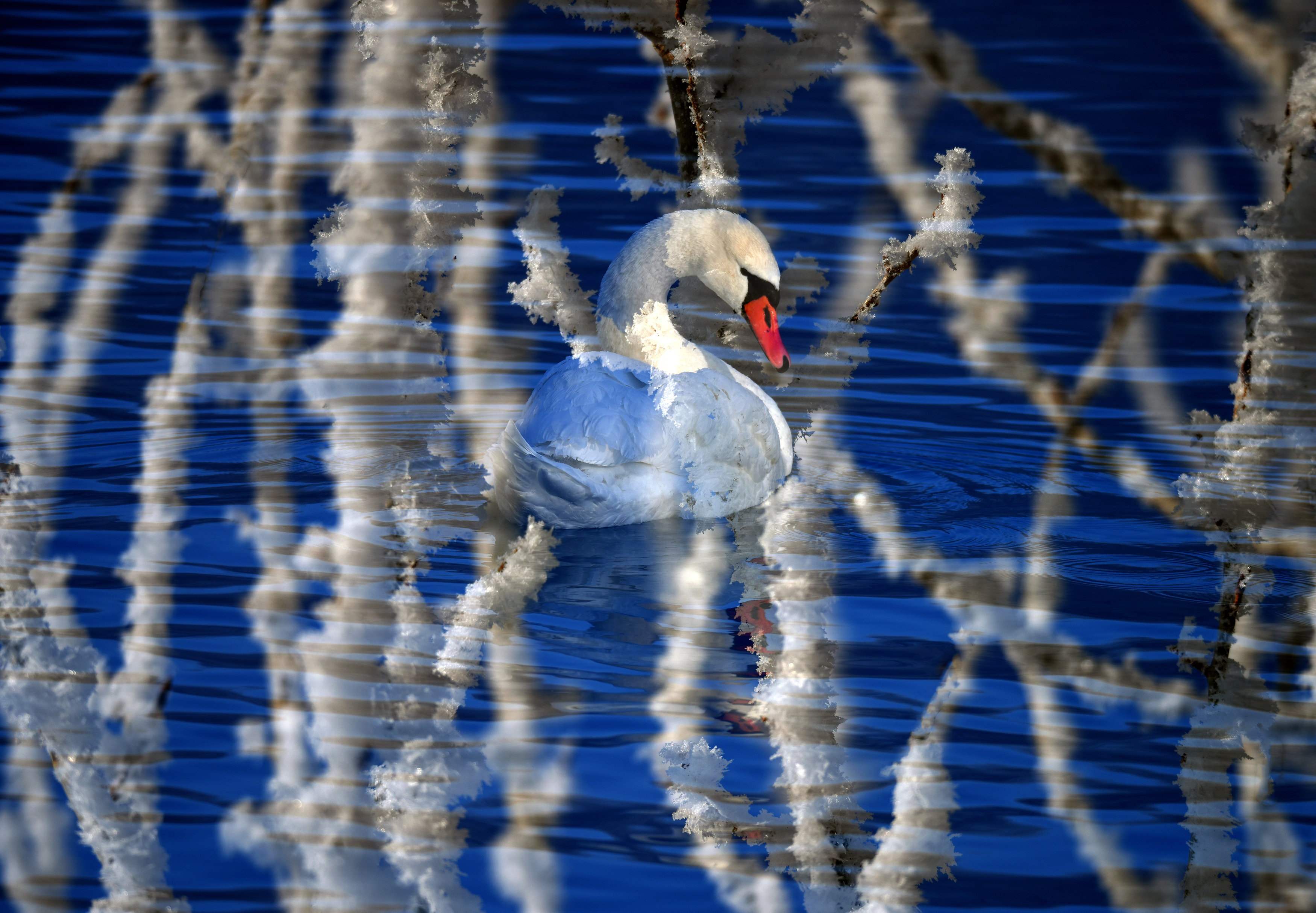 疆山如画丨伊宁县晨霭凝枝雾凇妍 碧波戏羽天鹅翩