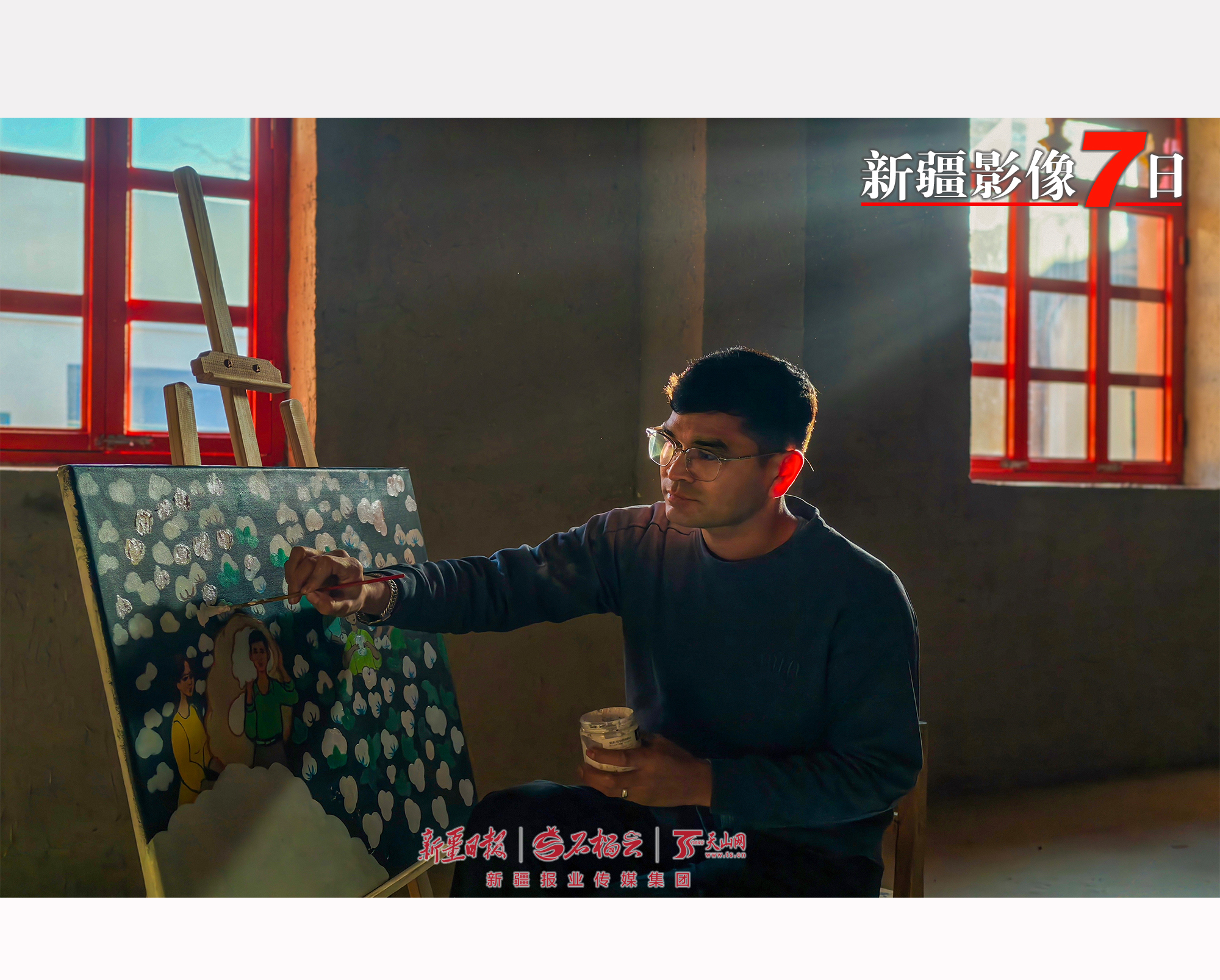 1月14日,阿瓦提县刀郎农民画专业合作社负责人、刀郎农民画非遗代表性传承人乃比江·阿布都热合曼在创作农民画。乃比江牵头成立合作社,带着13位农民画家,把家乡的新图景绘入画中,让古老的刀郎农民画有了时代新意。石榴云/新疆日报记者 周鹏摄