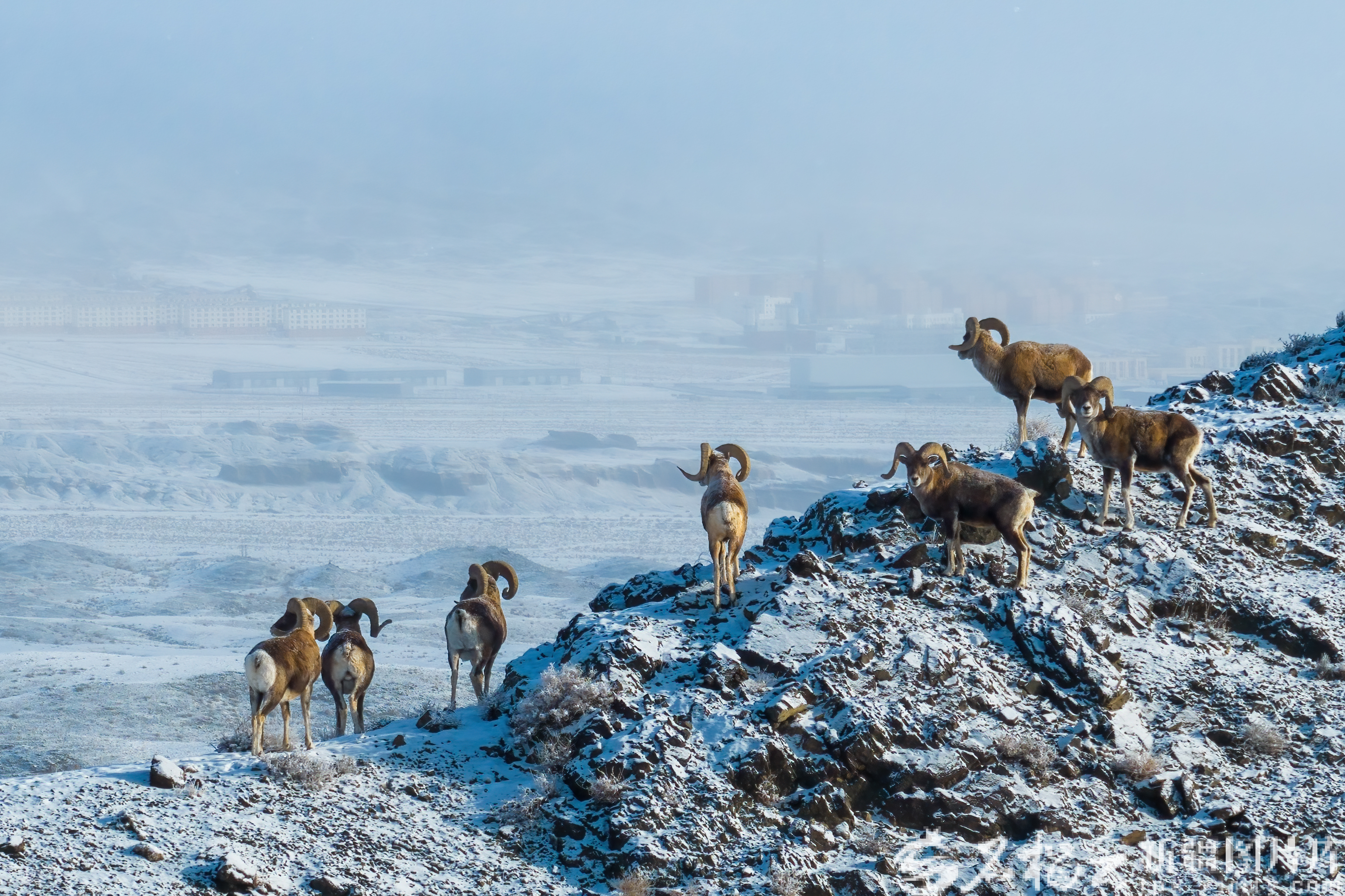 1月17日,克拉玛依市区北郊,国家二级保护野生动物盘羊漫步在银装素裹的山野间。近年来,克拉玛依市不断加大中心城区及外围地区荒漠化治理力度,为野生动物繁衍生息提供自然条件。曾经荒芜的矿山戈壁,如今成为盘羊、狐狸、金雕等野生动物的乐园。闵勇摄