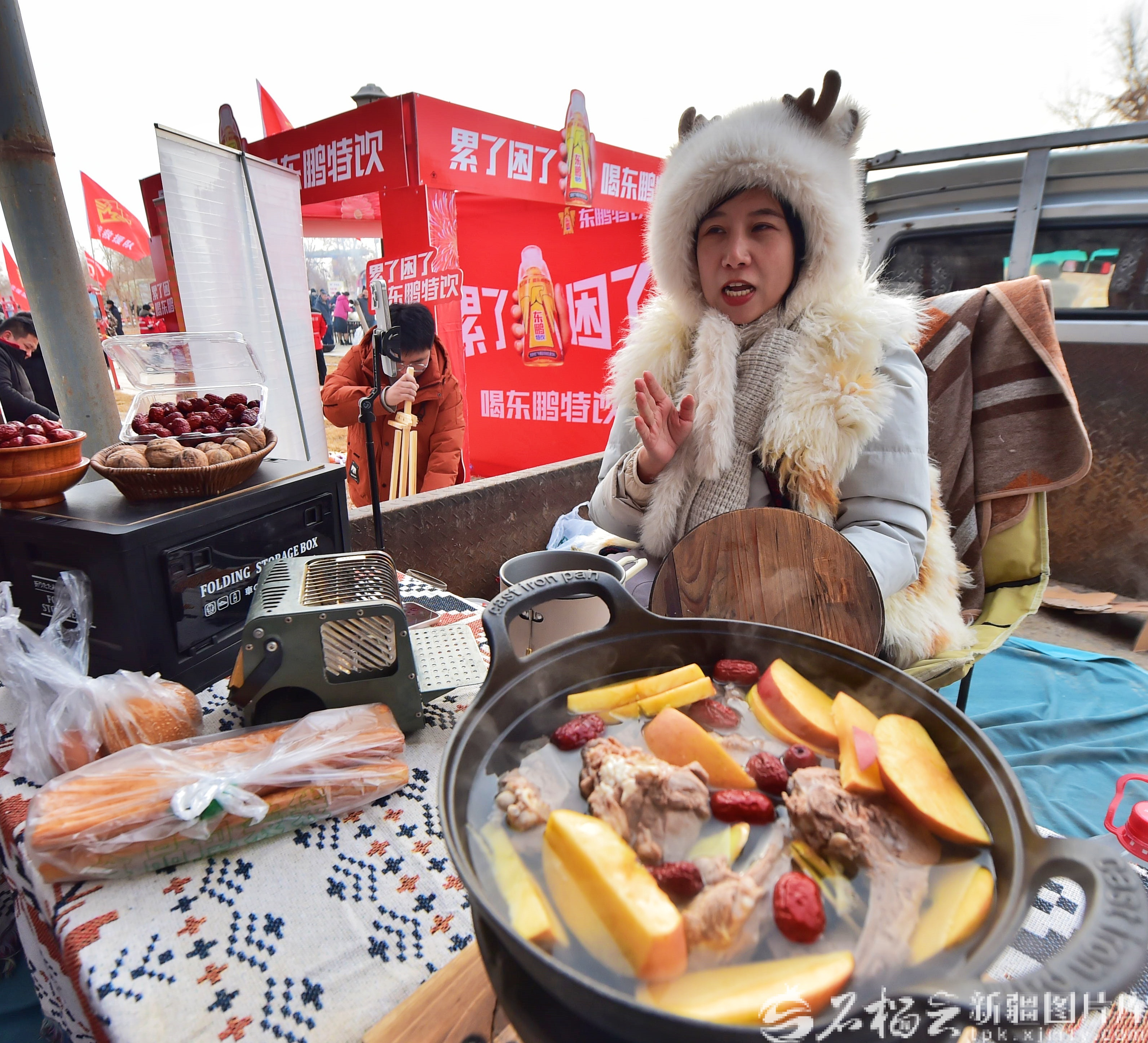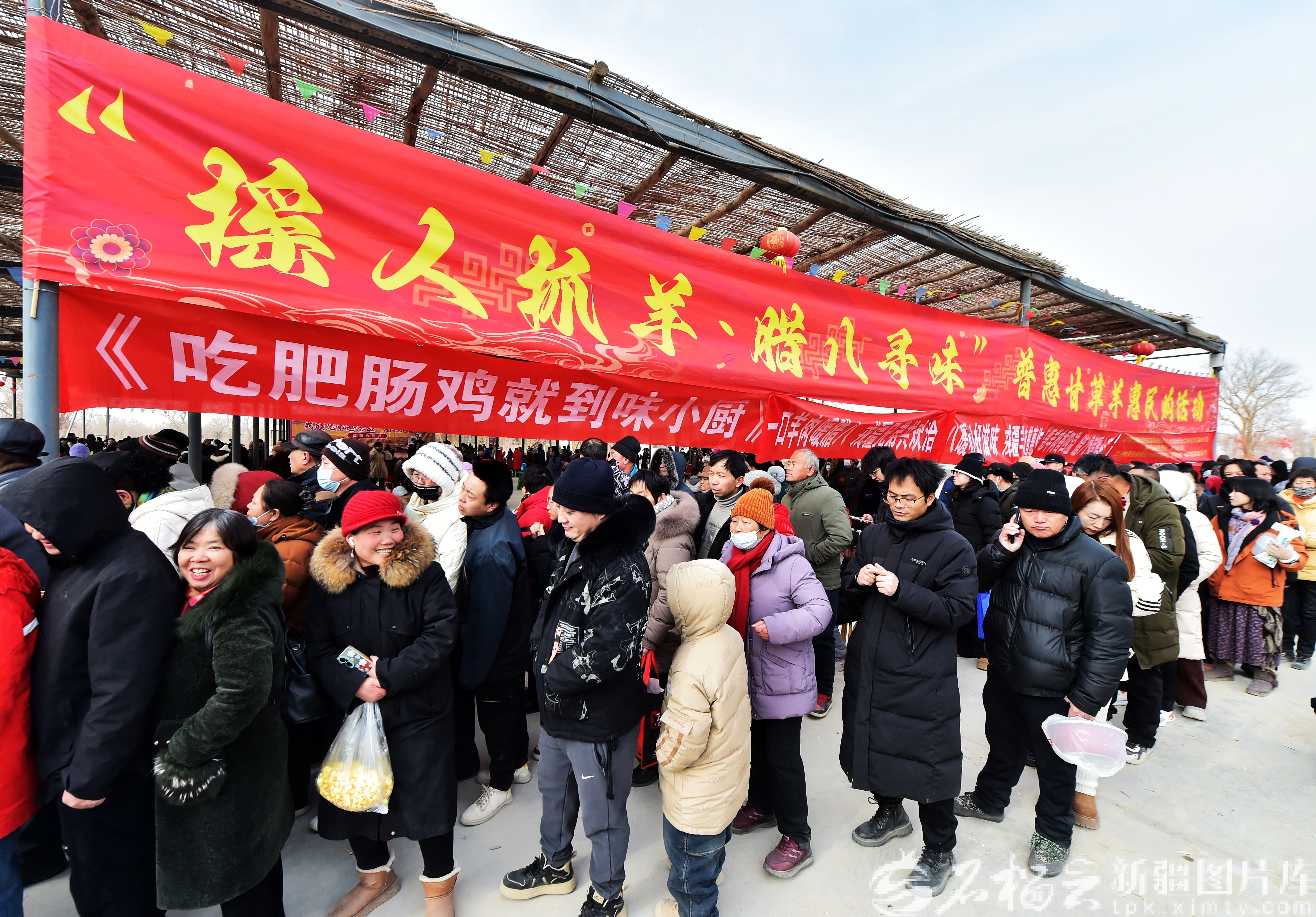 石榴云/新疆日报讯(记者 王立华摄影报道)1月25日,库尔勒市普惠乡胡杨林景区人声鼎沸,胡杨林环绕的景区广场上,7000余名游客从四面八方汇聚而来,共赴当地举办的“品普惠羊肉,过暖心腊八”活动。