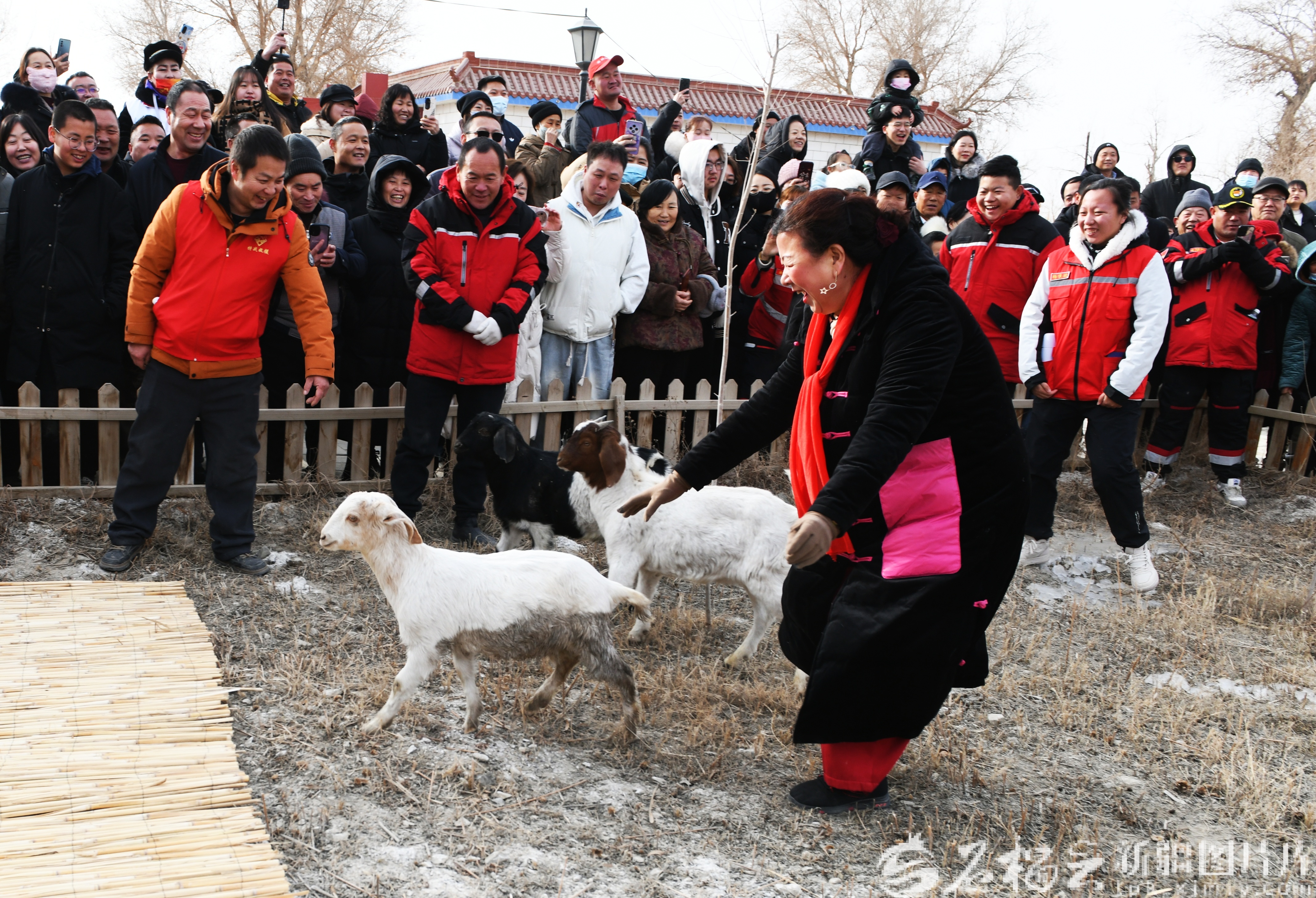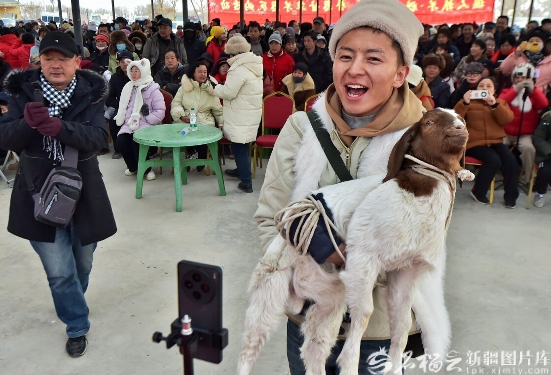 1月25日,游客参与抓羊比赛。