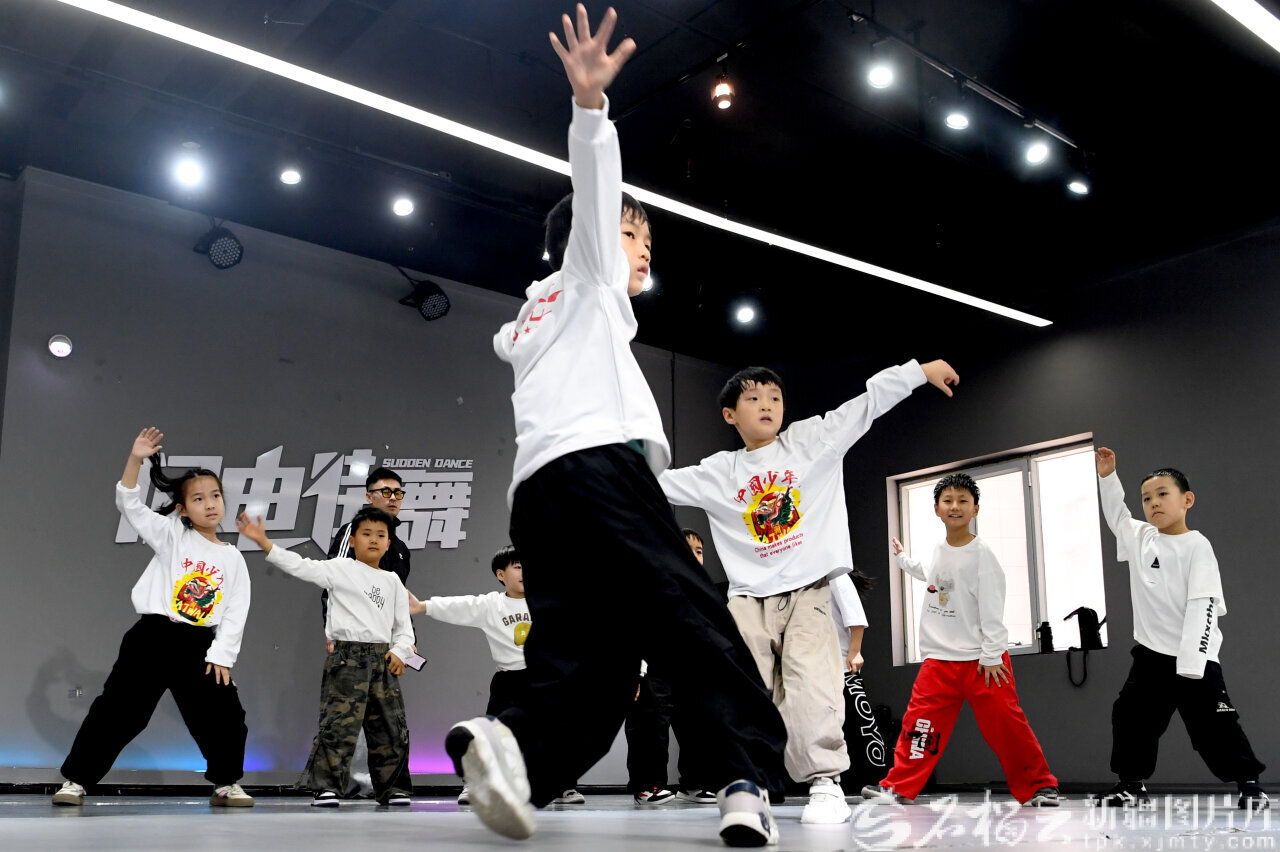 石榴云/新疆日报讯(记者 韩亮摄影报道)动感的节拍回荡在排练厅,18名身着舞服的小演员随着旋律灵活摆动肢体,动作干净利落,队形整齐划一。