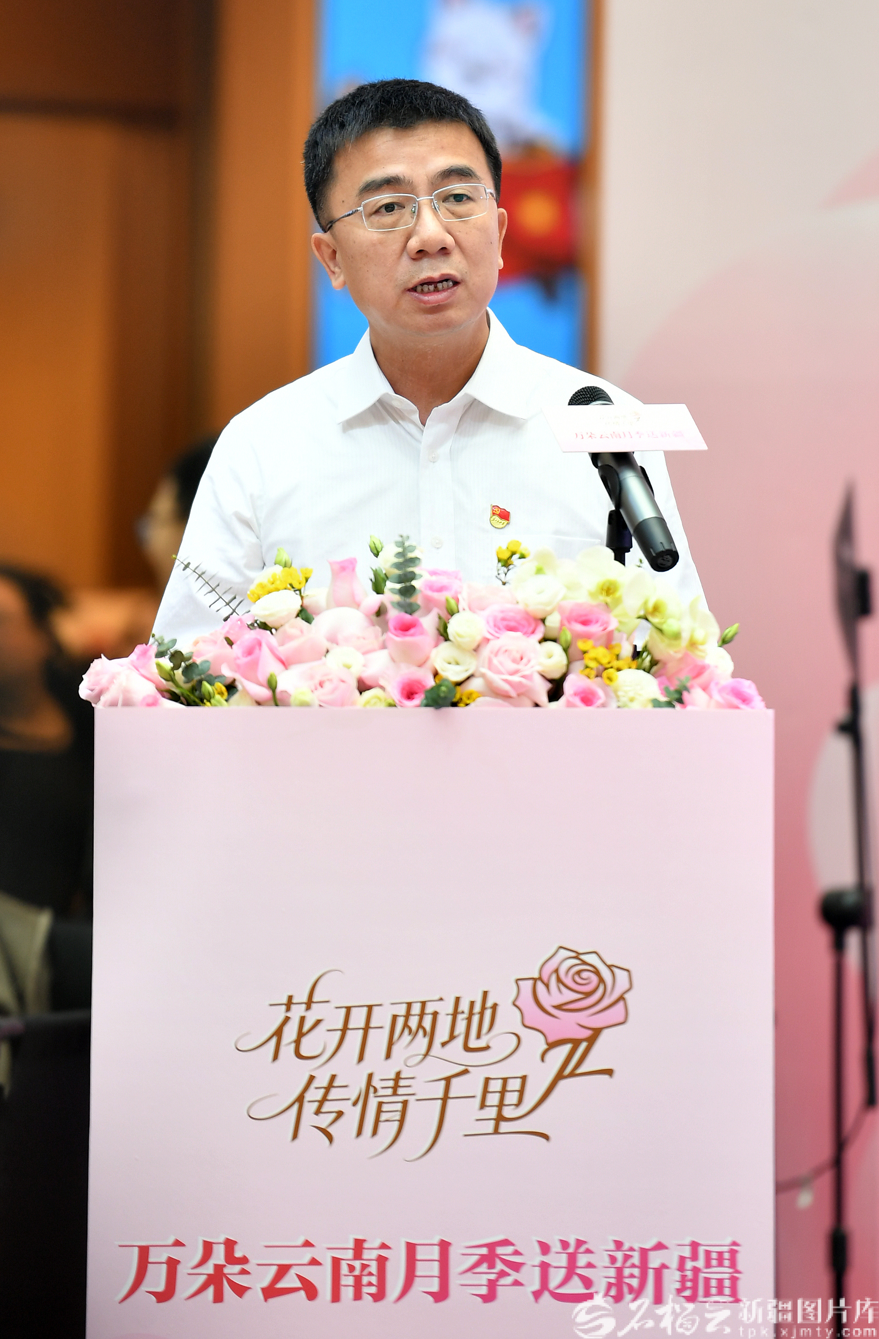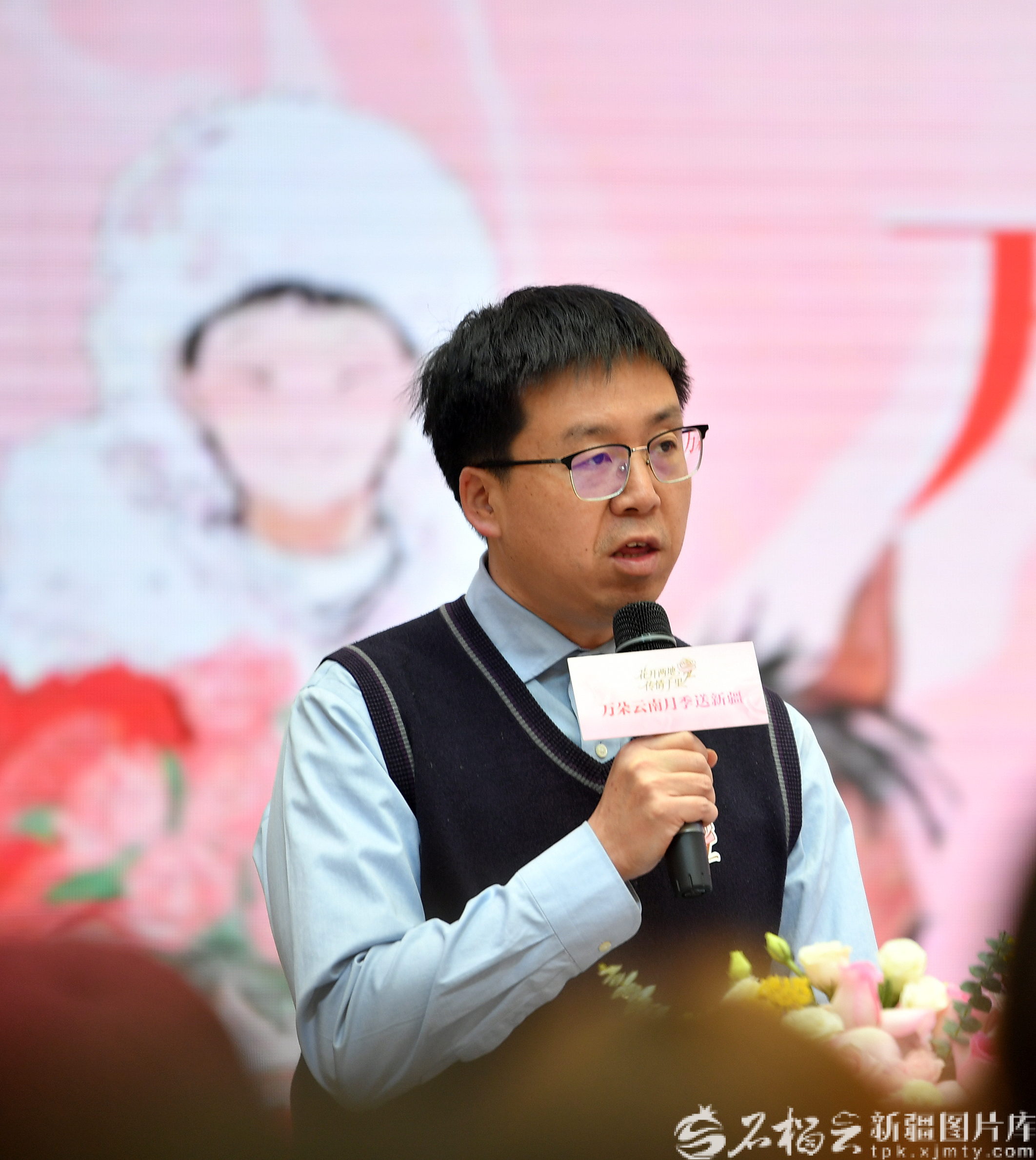 2月3日,云南省农科院花卉研究所副所长贾文杰致辞。石榴云/新疆日报记者 邹懿摄