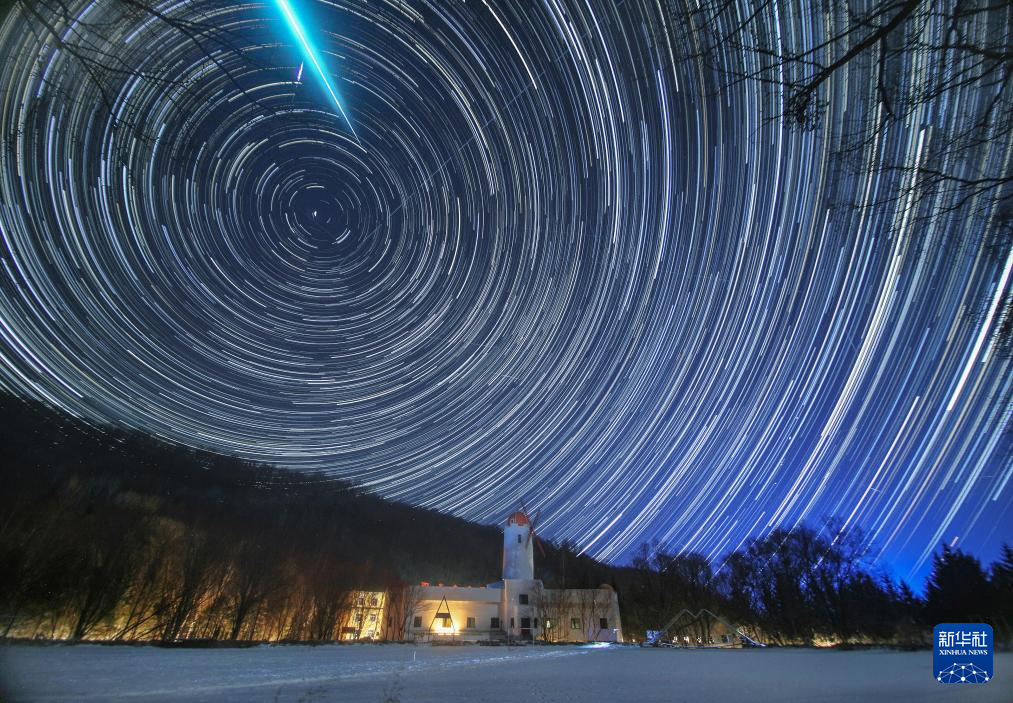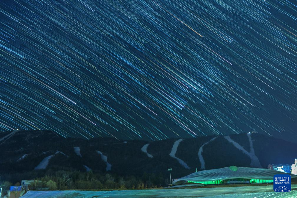 2025年12月14日在亚布力滑雪旅游度假区拍摄的双子座流星雨。新华社发(曾东摄)