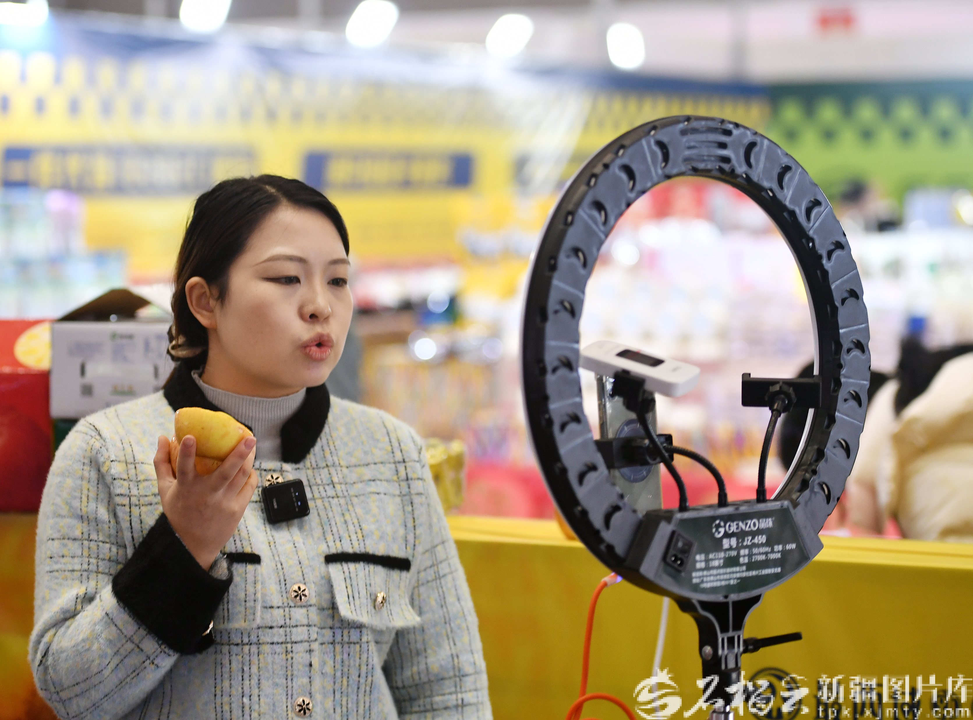 2月8日,销售商在年博会上直播带货。