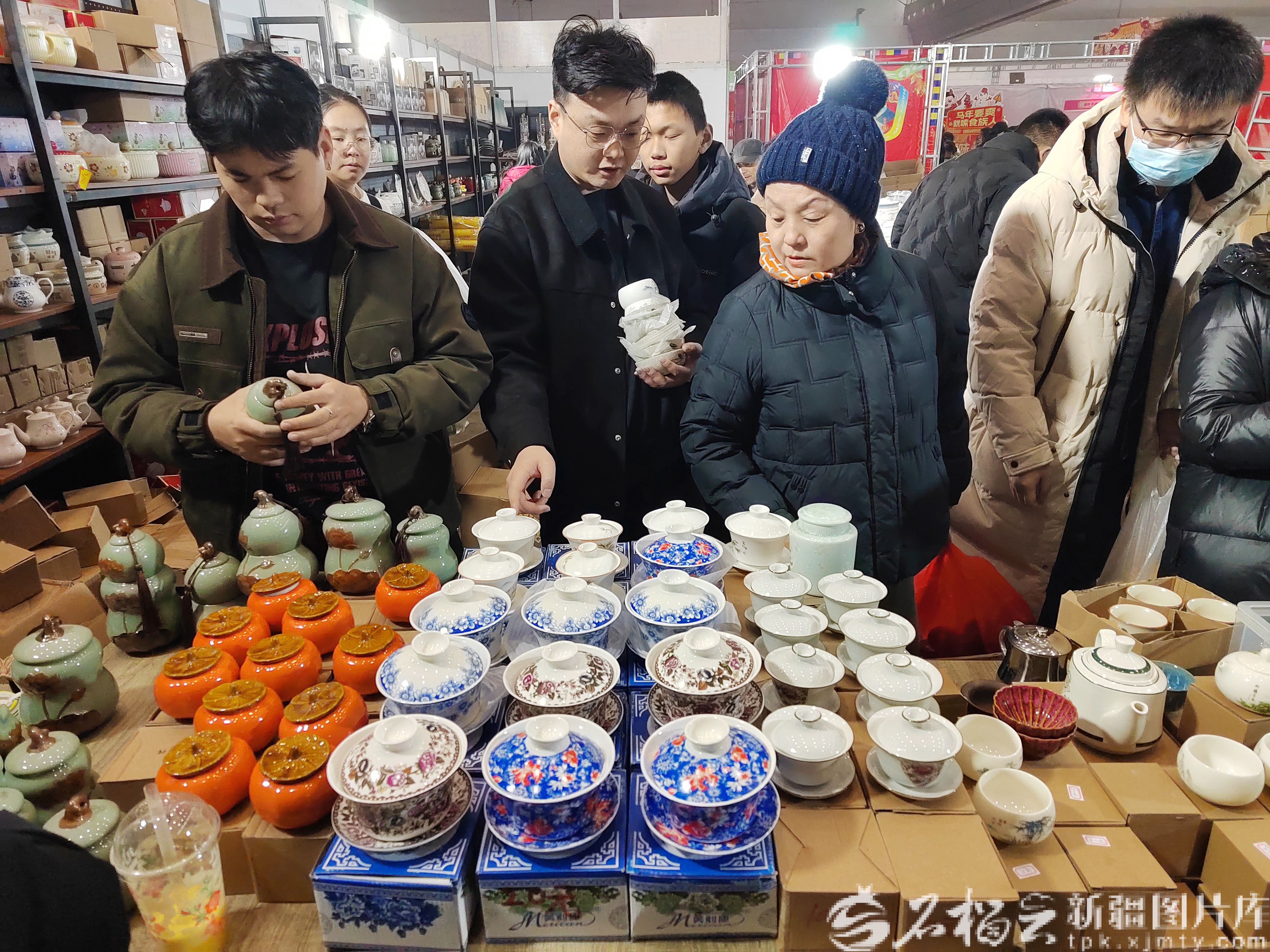 2月8日,市民在年博会上选购瓷器。