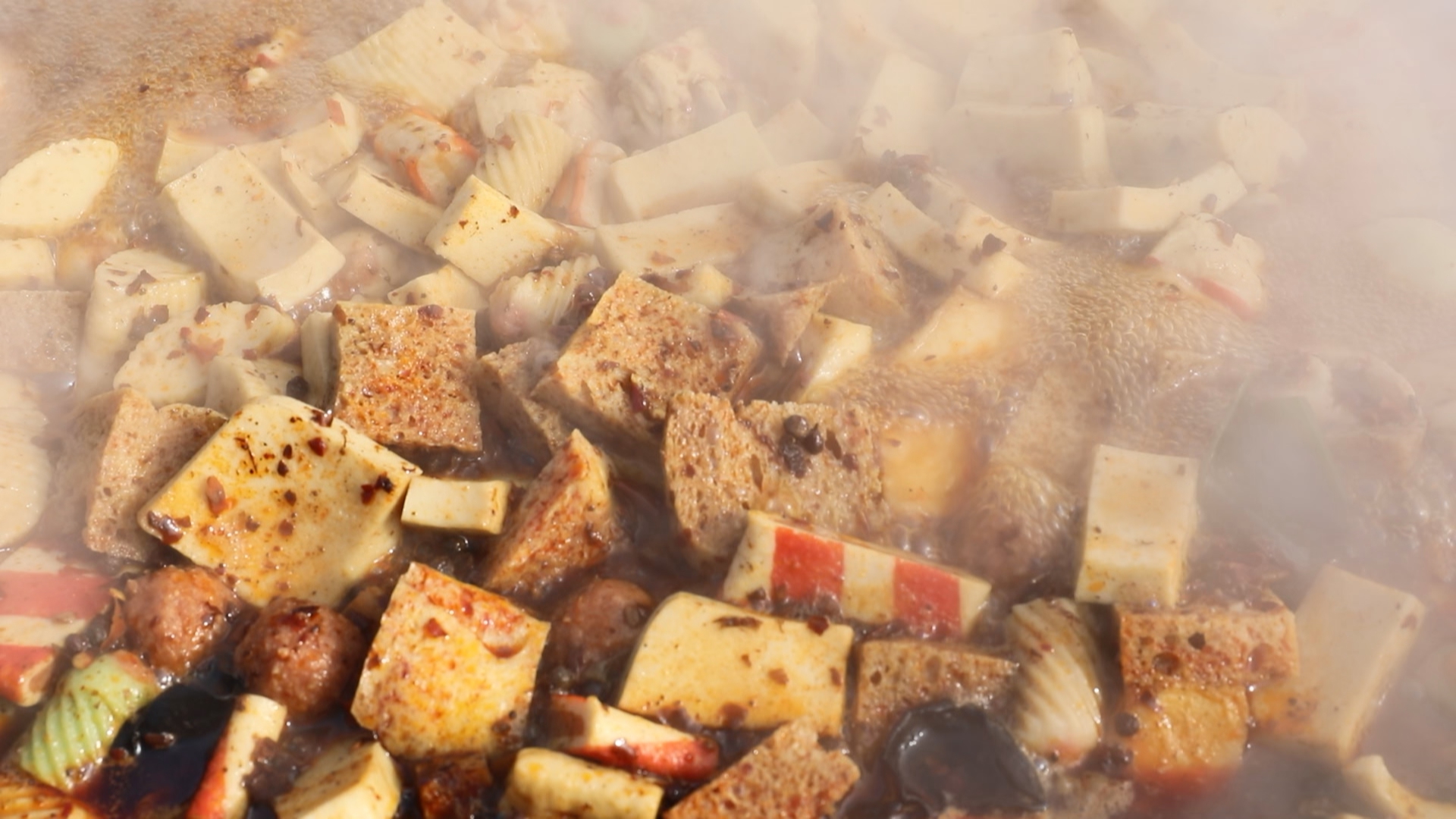 美食区热气蒸腾、香气扑鼻。千人火锅宴上,新鲜牛羊肉、手工丸子在锅内翻滚,鲜香四溢,吸引了众多游客驻足品尝,感受舌尖上的美味。