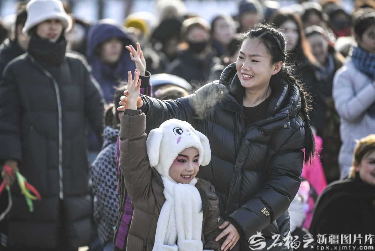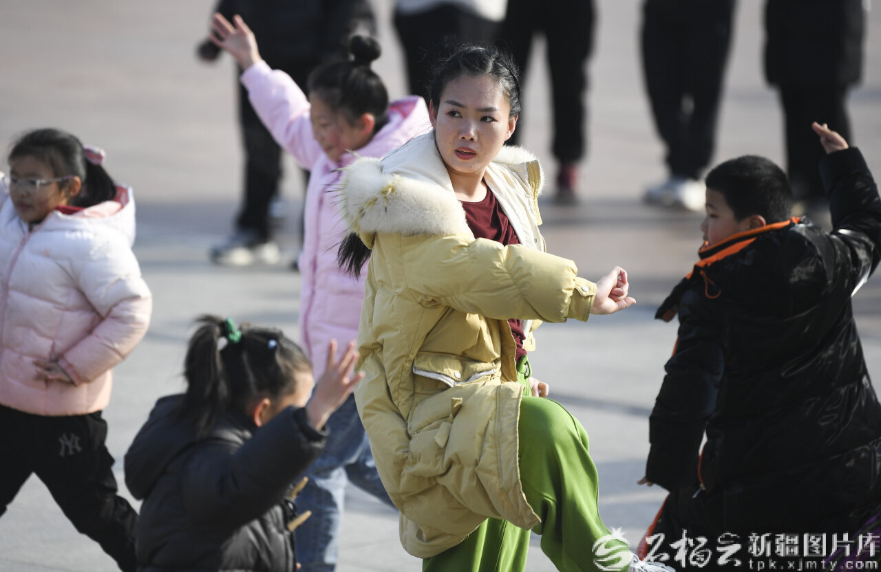 2月9日,张雅涵在米东区中心绿地广场带着小朋友排练社火。
