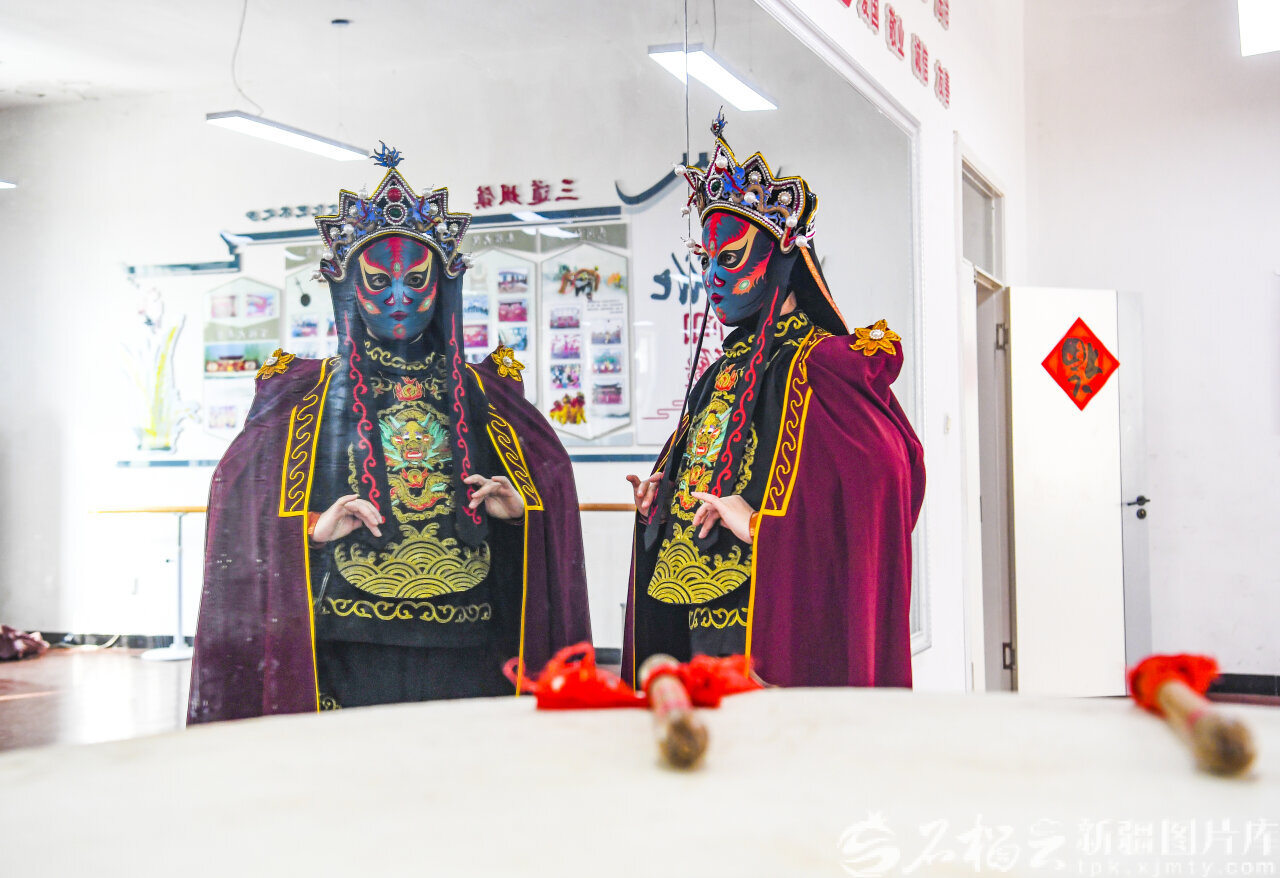2024年,张雅涵做出更大胆的决定:自费赴成都学川剧变脸。“传统社火要吸引年轻人,得有新元素。”在成都的日子里,她跟着师父起早贪黑练手法、抠身法、研技法,从“一张脸都变不利索”到“十指翻飞变七彩”,仅用一个多月便掌握核心技巧。