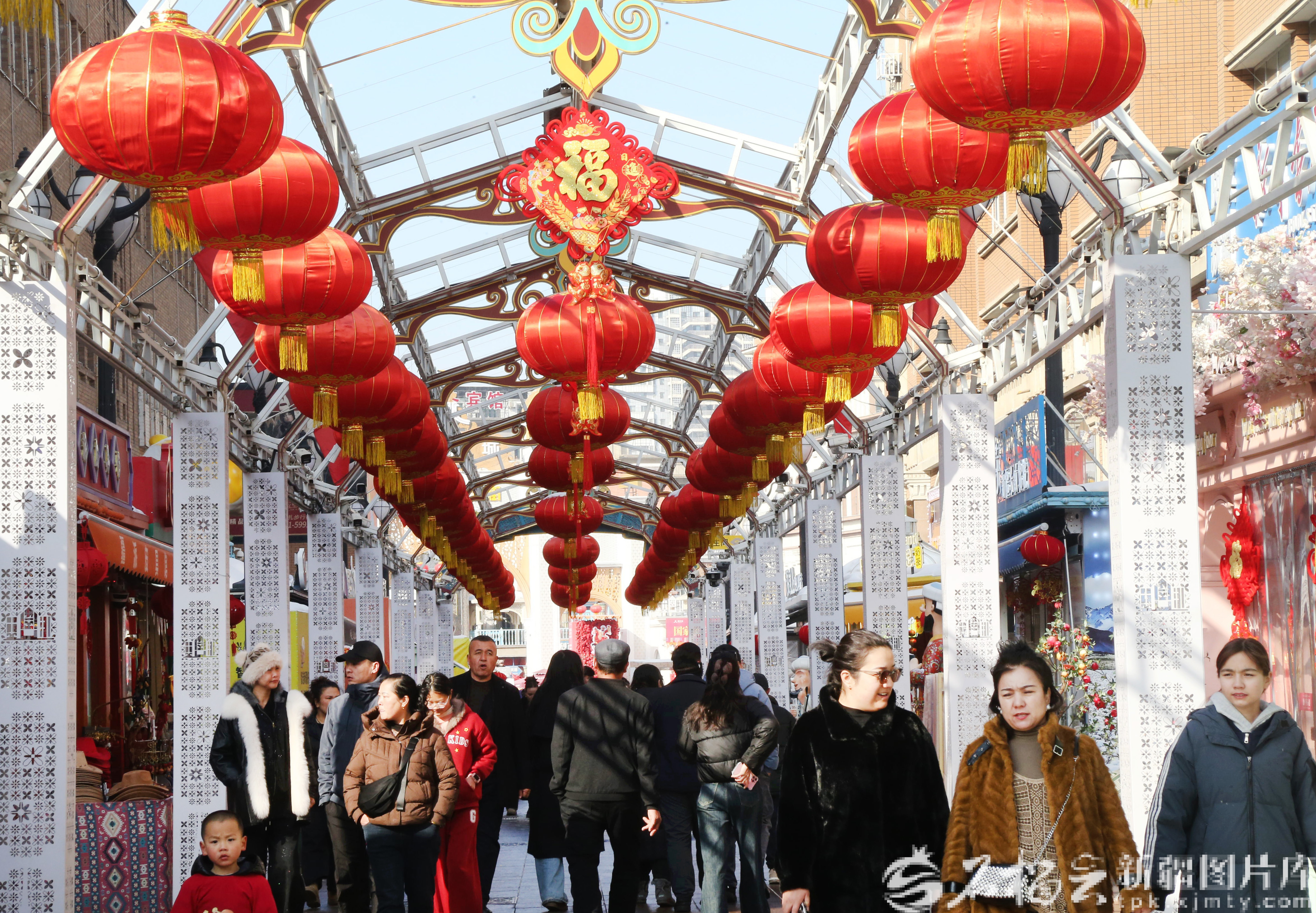 石榴云/新疆日报讯(记者 李雄心 杨斌报道)新春佳节将至,新疆各地处处洋溢着喜庆祥和的氛围,街头巷尾灯笼高挂、张灯结彩,年货摊位上,春联、福字、中国结、红灯笼等喜庆饰品琳琅满目。各族人民共迎新春佳节,共同期许新的一年幸福祥和、工作生活更上层楼。