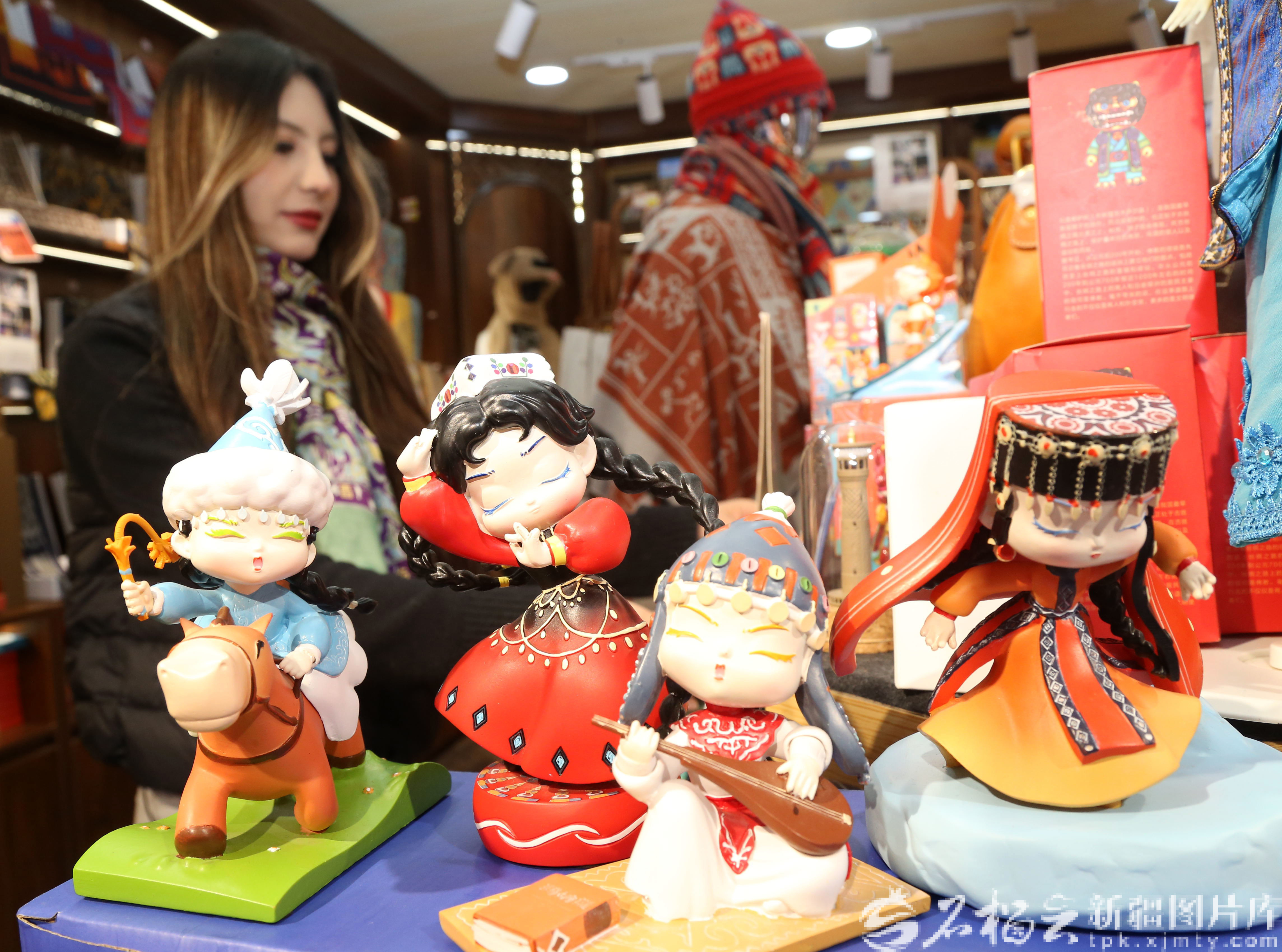 2月14日,游客在新疆国际大巴扎选购文创产品。石榴云/新疆日报记者 李雄心摄