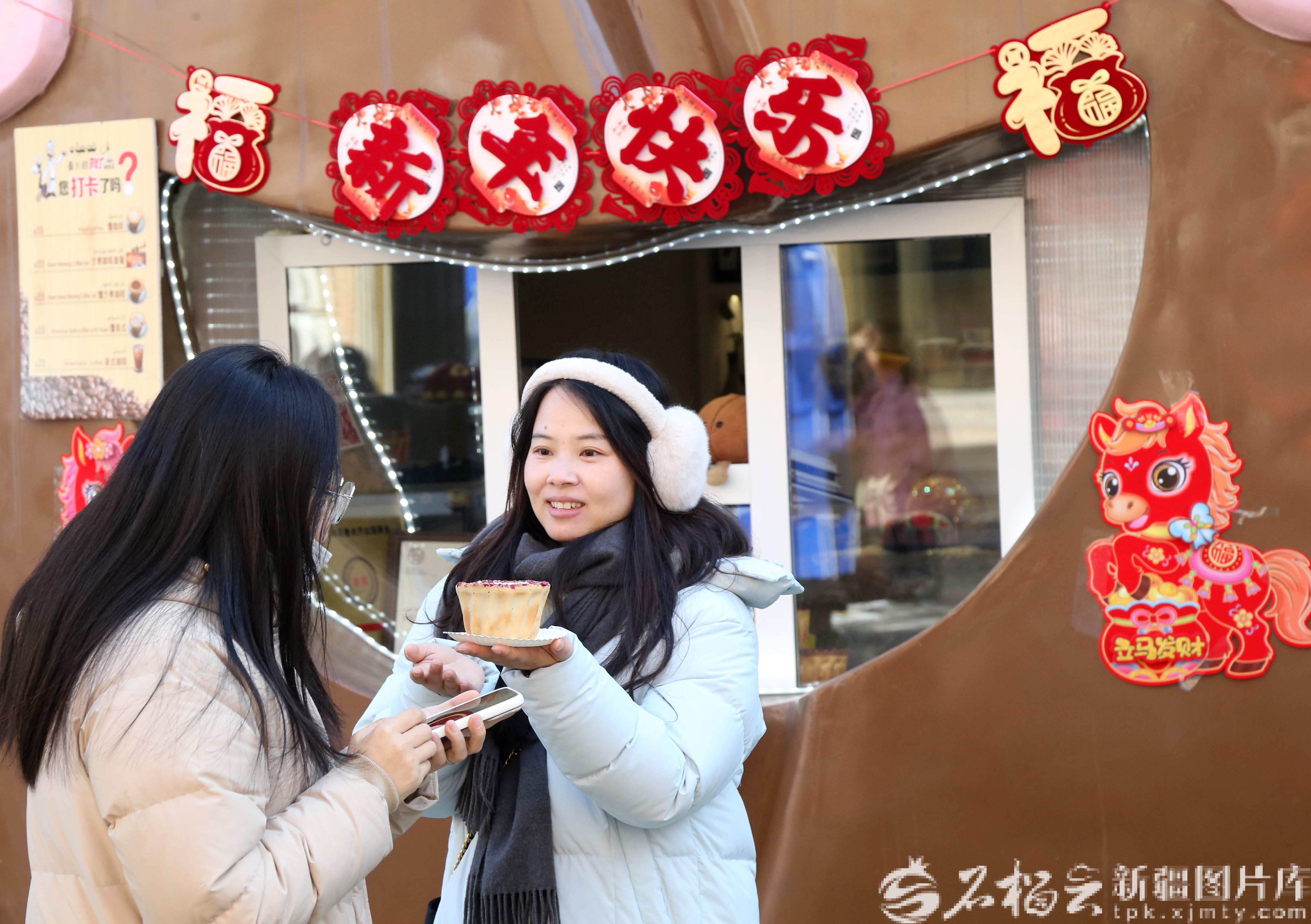 2月14日,游客在新疆国际大巴扎品尝馕咖啡。石榴云/新疆日报记者 李雄心摄
