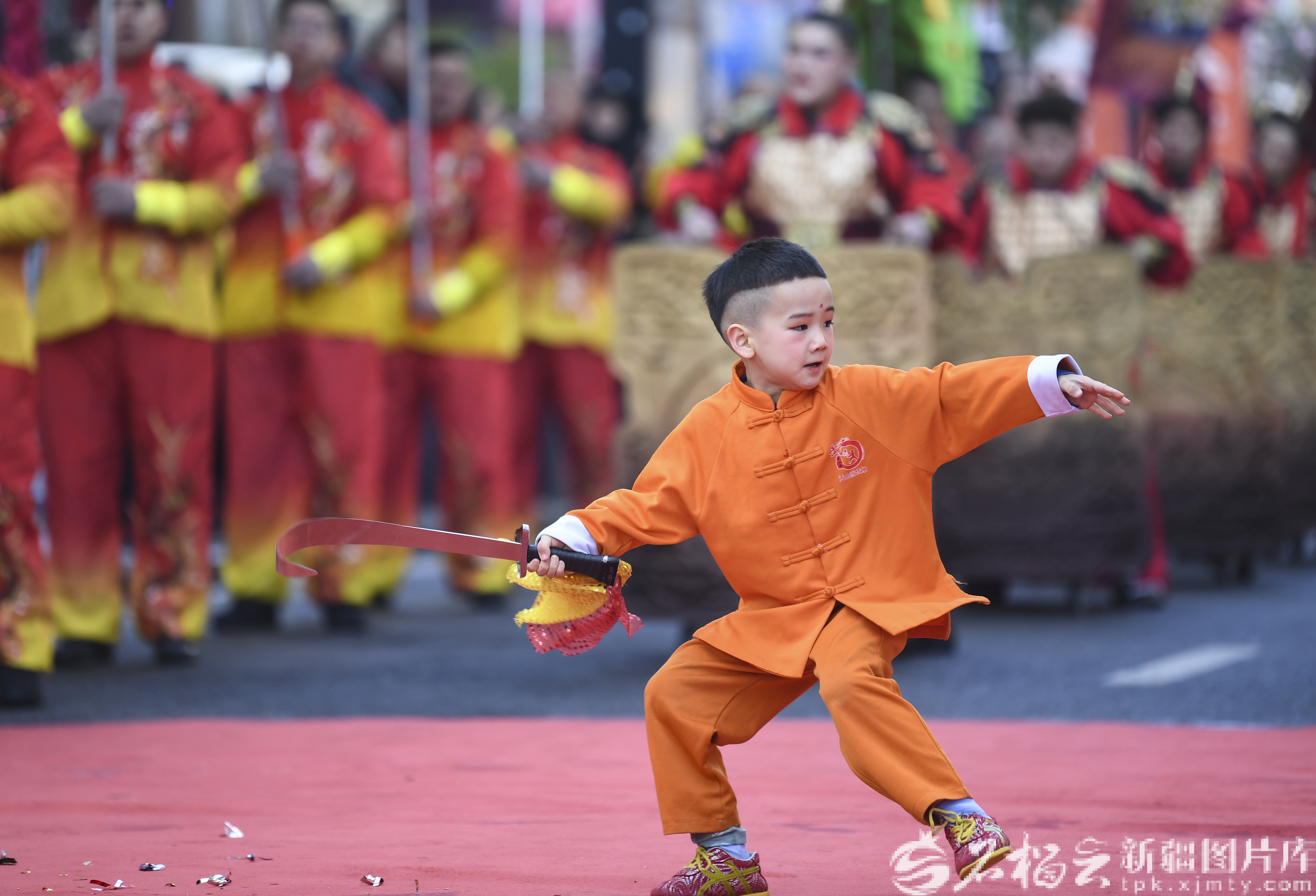 2月14日,小演员在表演武术。石榴云/新疆日报记者 汤永摄