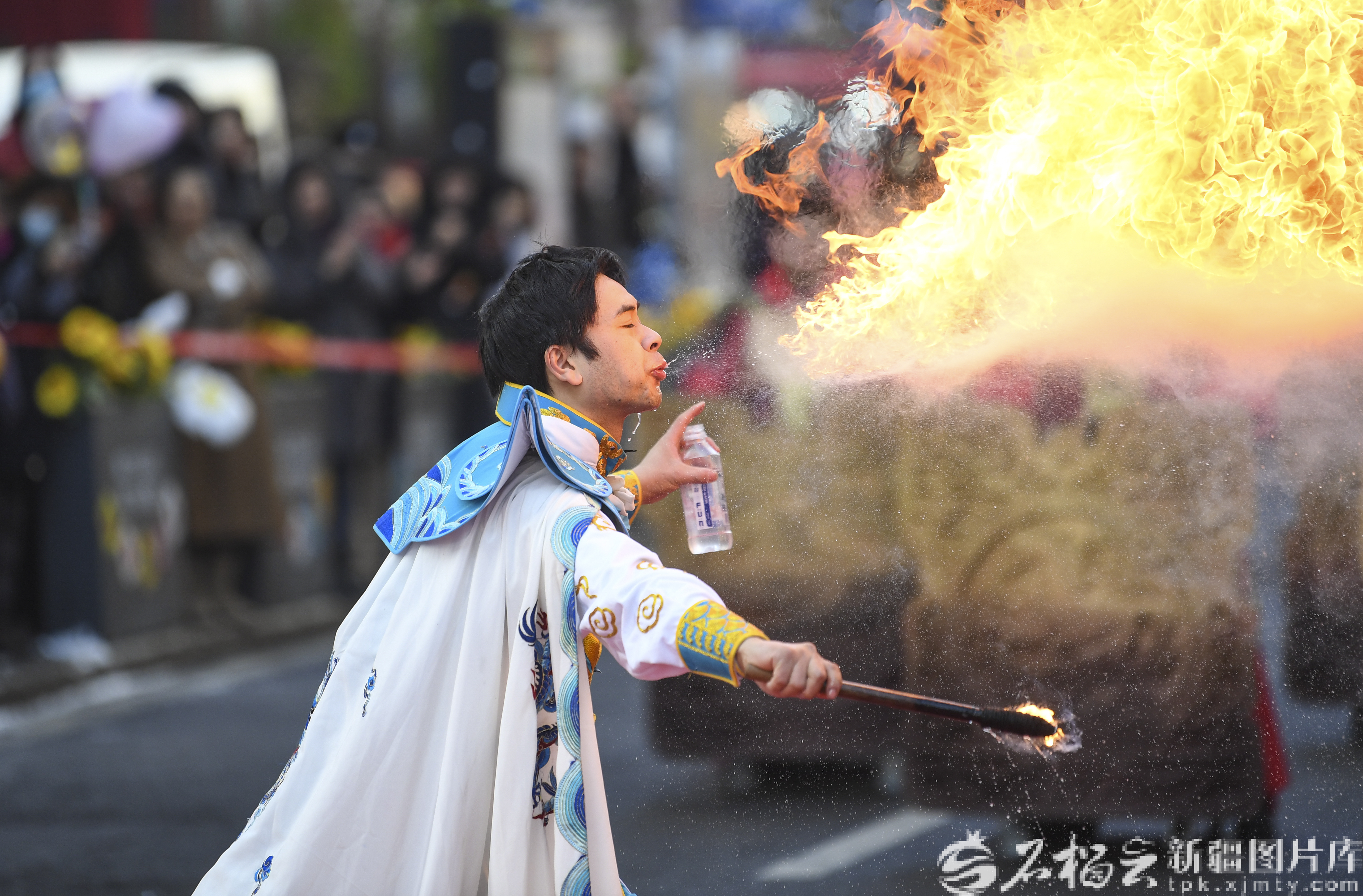 2月14日,演员在表演喷火。石榴云/新疆日报记者 汤永摄