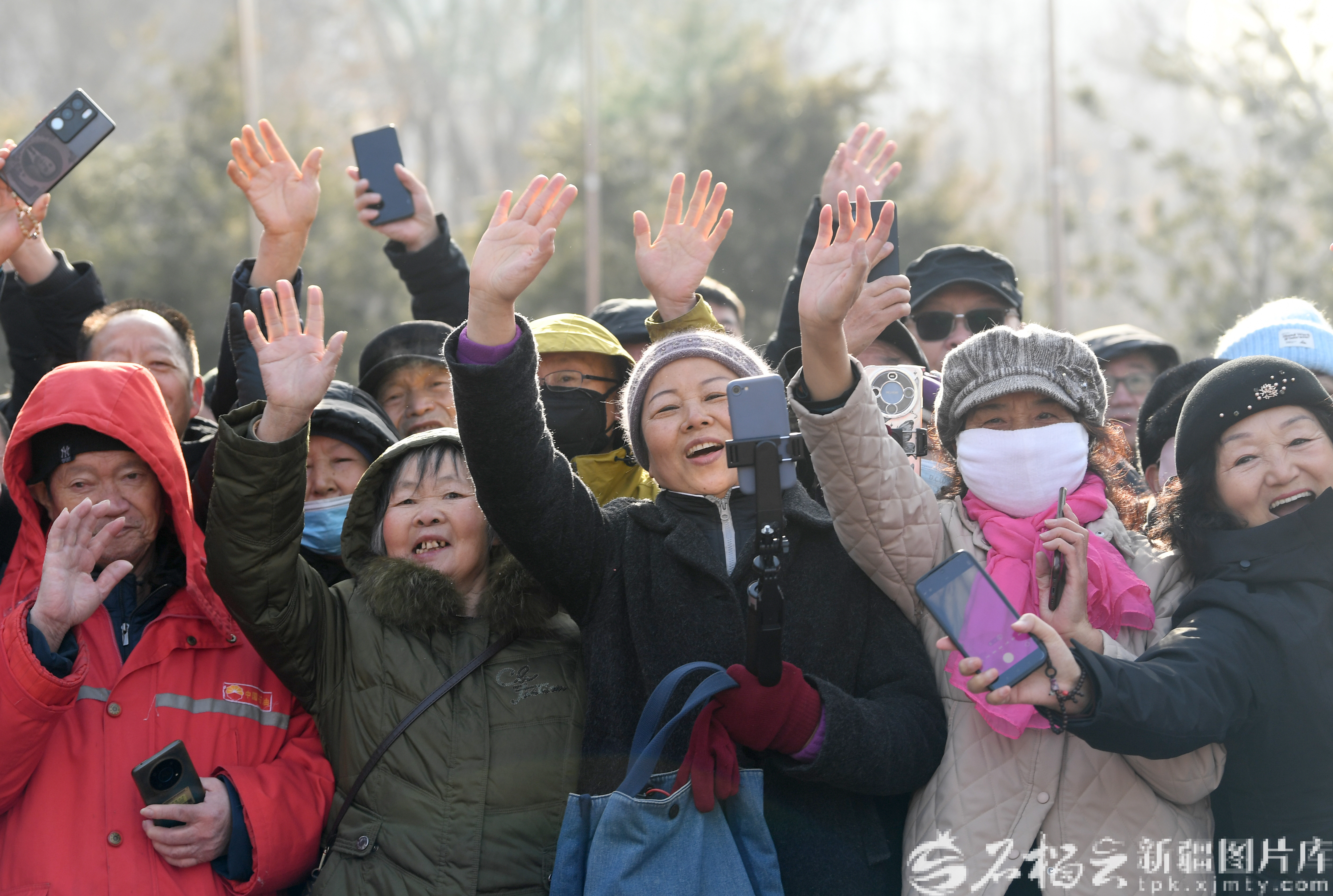 2月14日,市民在观看社火,并与演员互动。石榴云/新疆日报记者 韩亮摄