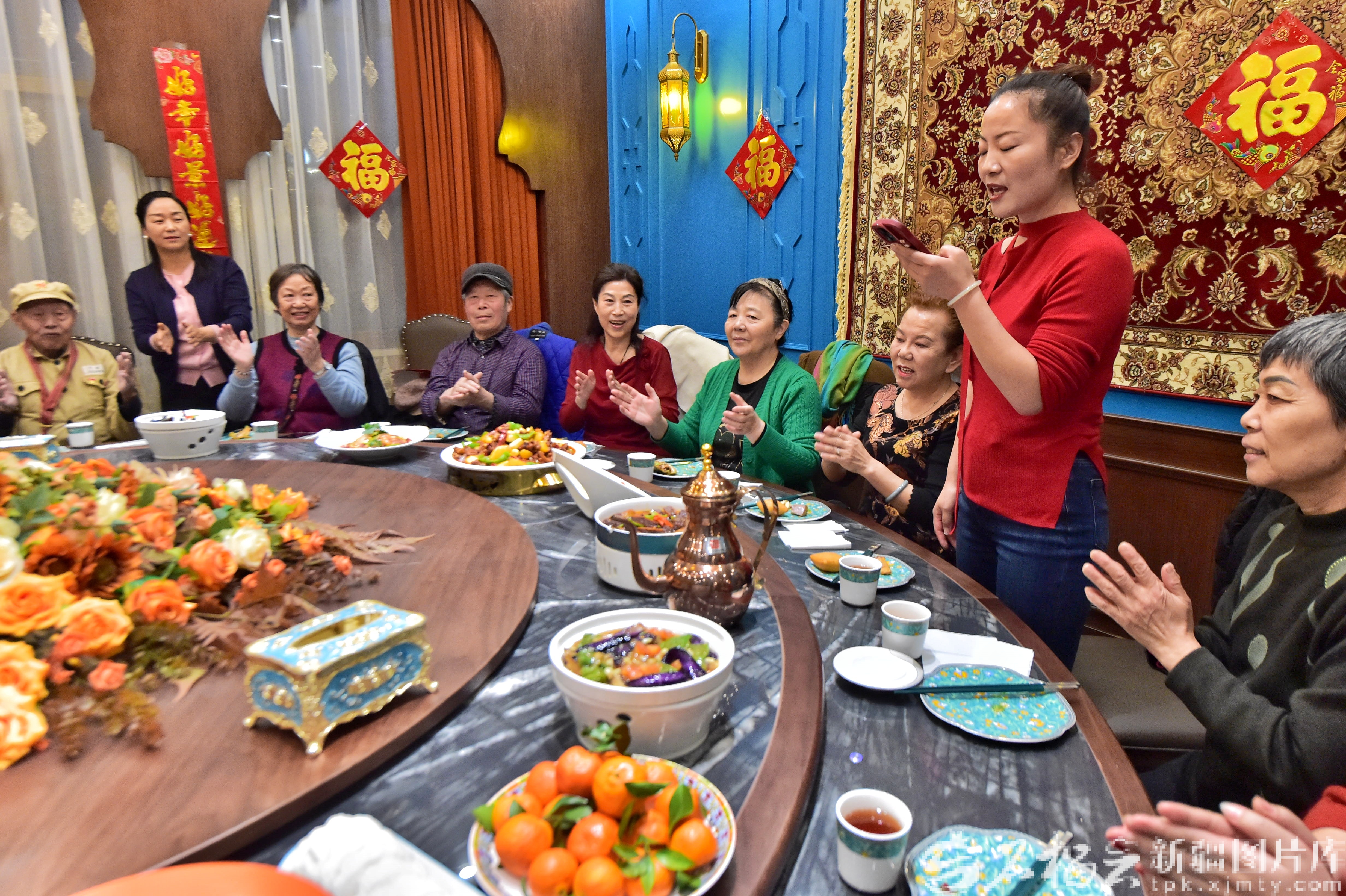 石榴云/新疆日报讯(记者 王立华摄影报道)2月16日晚,除夕之夜,库尔勒市西域胡杨餐厅内暖意融融、欢声笑语。梨香园社区组织抗美援朝老战士、孤寡老人及居民代表20余人欢聚一堂,共度除夕、喜迎马年新春。