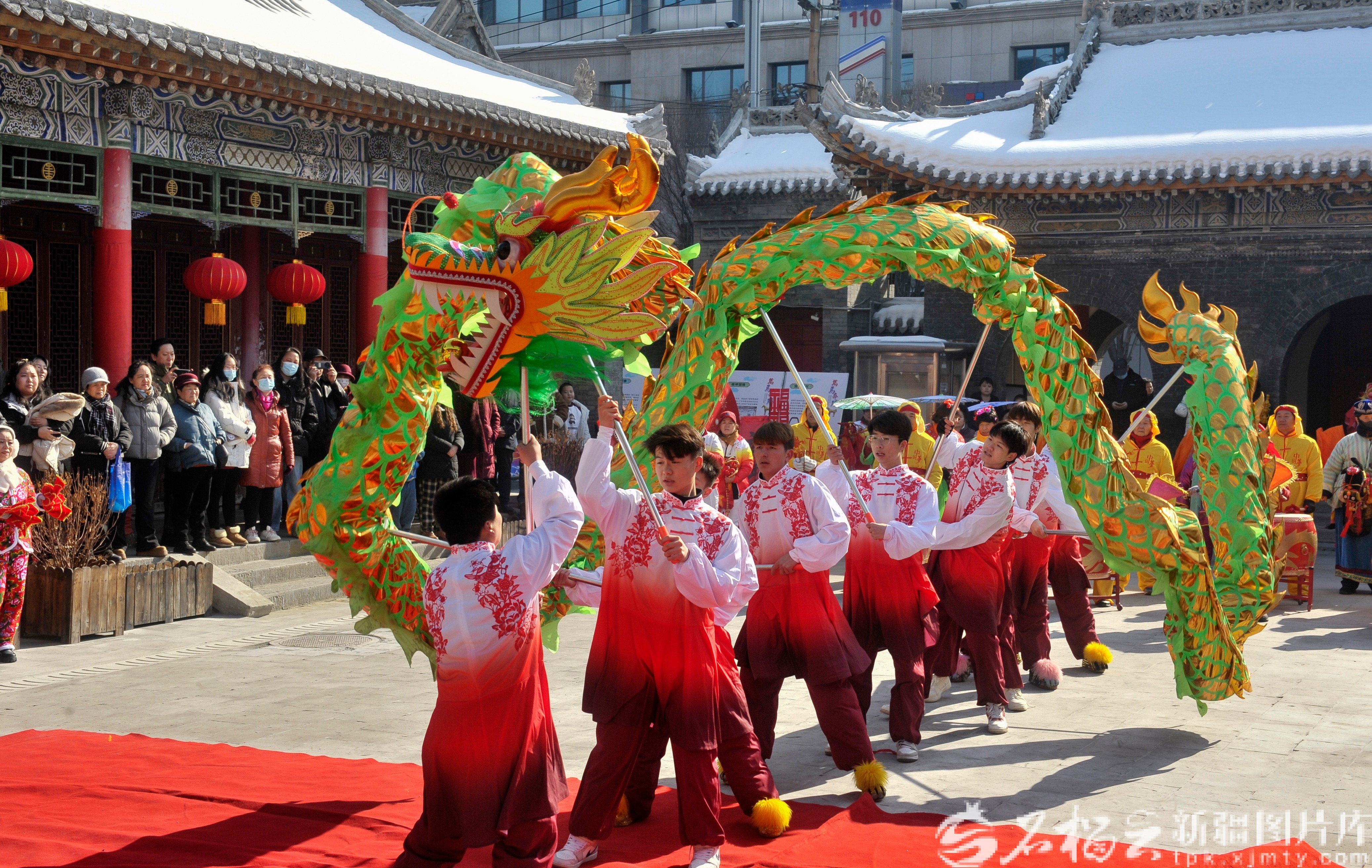 2月17日,演员在文庙表演舞龙。石榴云/新疆日报记者 王禹摄