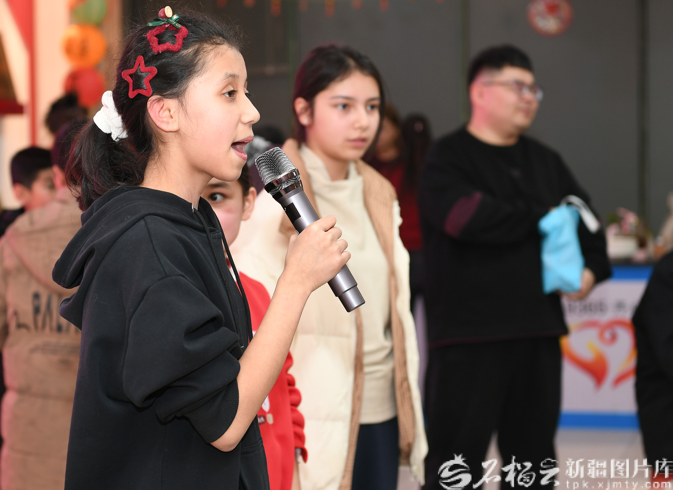 2月16日,在乌鲁木齐市天山区二道桥街道固原巷社区举办“情暖固原巷·除夕共团圆”暖心年夜饭活动现场,小朋友们回答马年“马”字成语。石榴云/新疆日报记者 约提克尔·尼加提摄