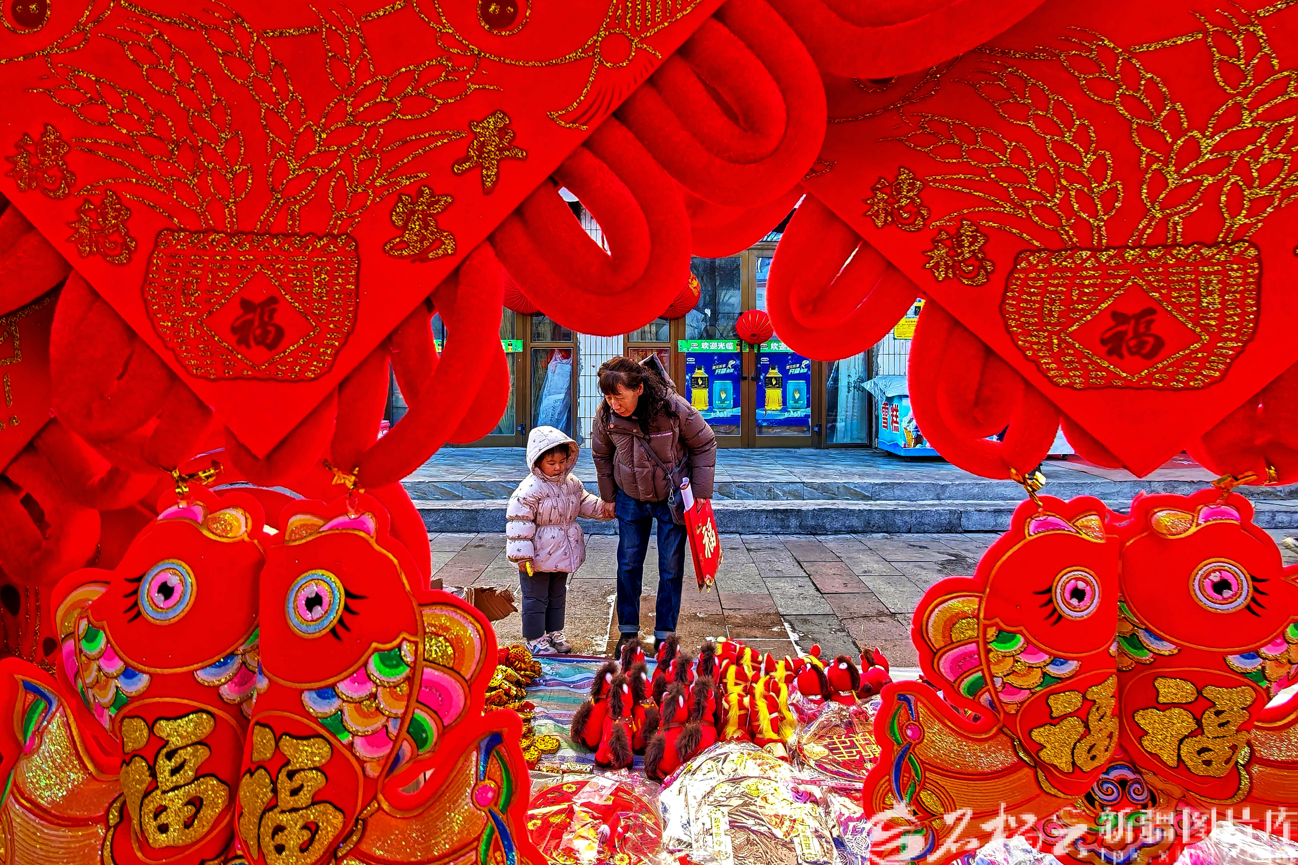 2月9日,巴里坤哈萨克自治县街头顾客在选购新春饰品。随着农历春节脚步的临近,巴里坤古城处处洋溢着喜庆祥和的节日氛围。街头巷尾张灯结彩,红灯笼、中国结、春联、窗花、福字等新春饰品琳琅满目,居民们纷纷走上街头,选购年货,为即将到来的春节增添浓浓的“年味”。 石榴云/新疆日报记者 蔡增乐摄