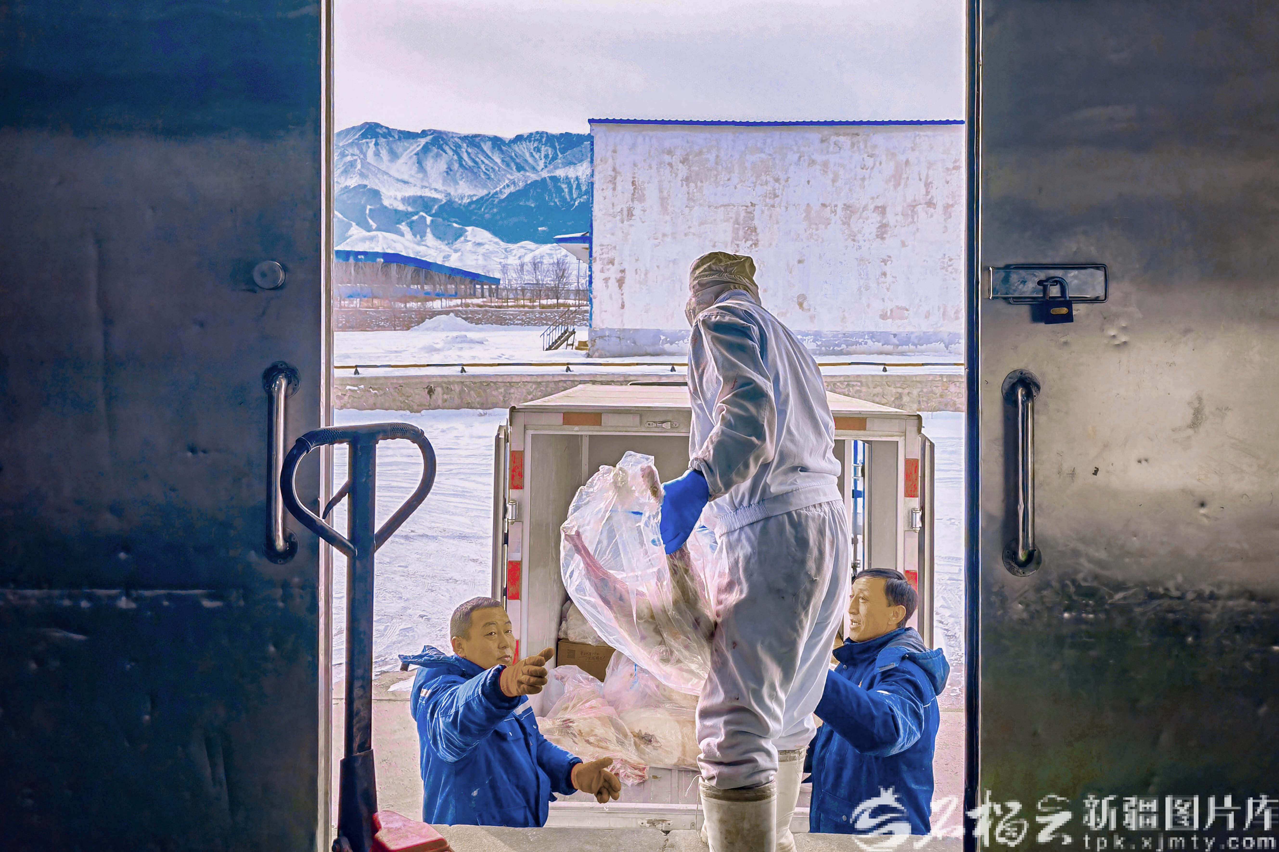 2月11日,工人在生产加工肉源中心搬运出库的羊肉。 春节将至,肉类产品迎来消费高峰。走进巴里坤农牧业投资集团有限公司生产加工肉源中心,整洁的车间内一派繁忙景象。清洗、排酸、速冻、分割等各条流水线有序运转,工作人员分工明确、配合默契。一批批优质牛羊肉陆续出库,经严格质检后发往各地市场,确保节日期间牛羊肉供应充足、品质放心。石榴云/新疆日报记者 蔡增乐摄