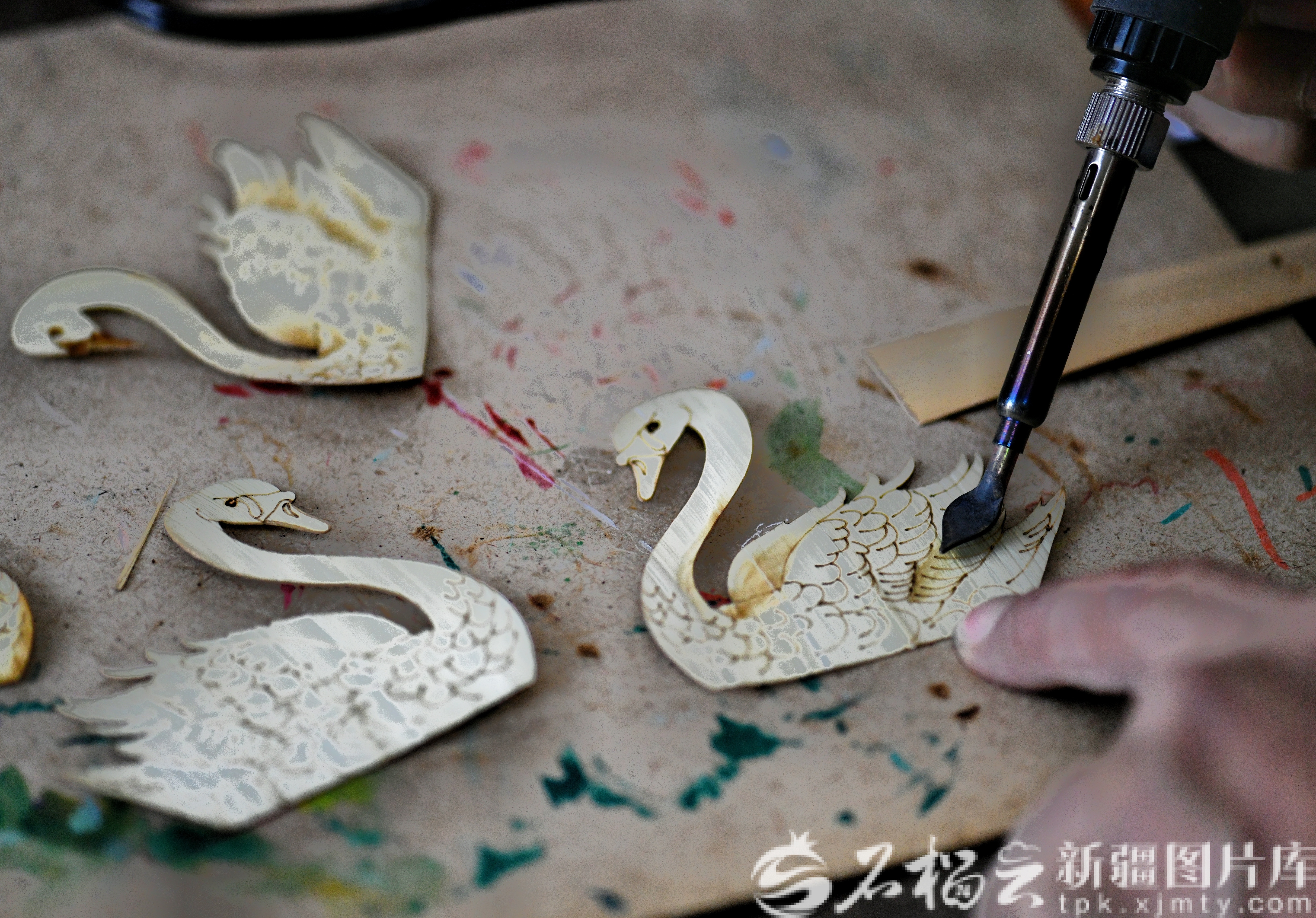 石榴云/新疆日报讯(记者 王立华摄影报道)2月14日下午,在库尔勒汇嘉时代商业投资有限公司芦苇工艺品展示厅,游客络绎不绝,造型生动、品类丰富的芦苇工艺品吸引众多游客驻足观赏。其中,以骏马奔腾为主题的芦苇画尤为亮眼,成为现场人气爆款。与此同时,在库尔勒经济技术开发区金芦苇工艺品工作室,库尔勒市级非物质文化遗产代表性传承人张新华正以剪、刻、烫、贴等技法,将平凡芦苇丝化为灵动艺术品,以匠心传承技艺、以作品讲述梨城故事。