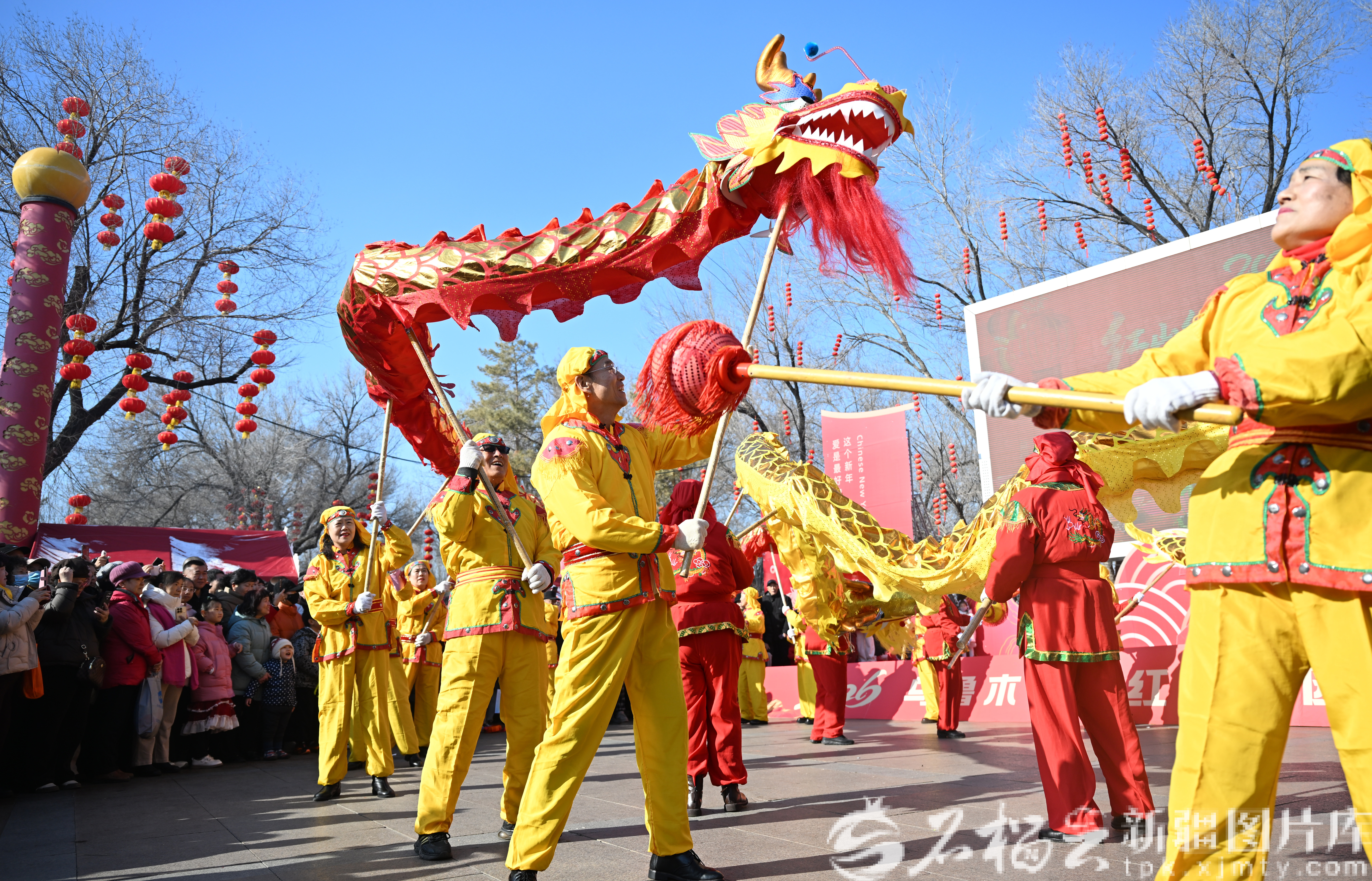 满城烟火气与浓浓年味在此交织,红灯笼高挂枝头,将整座公园装点得喜气洋洋。