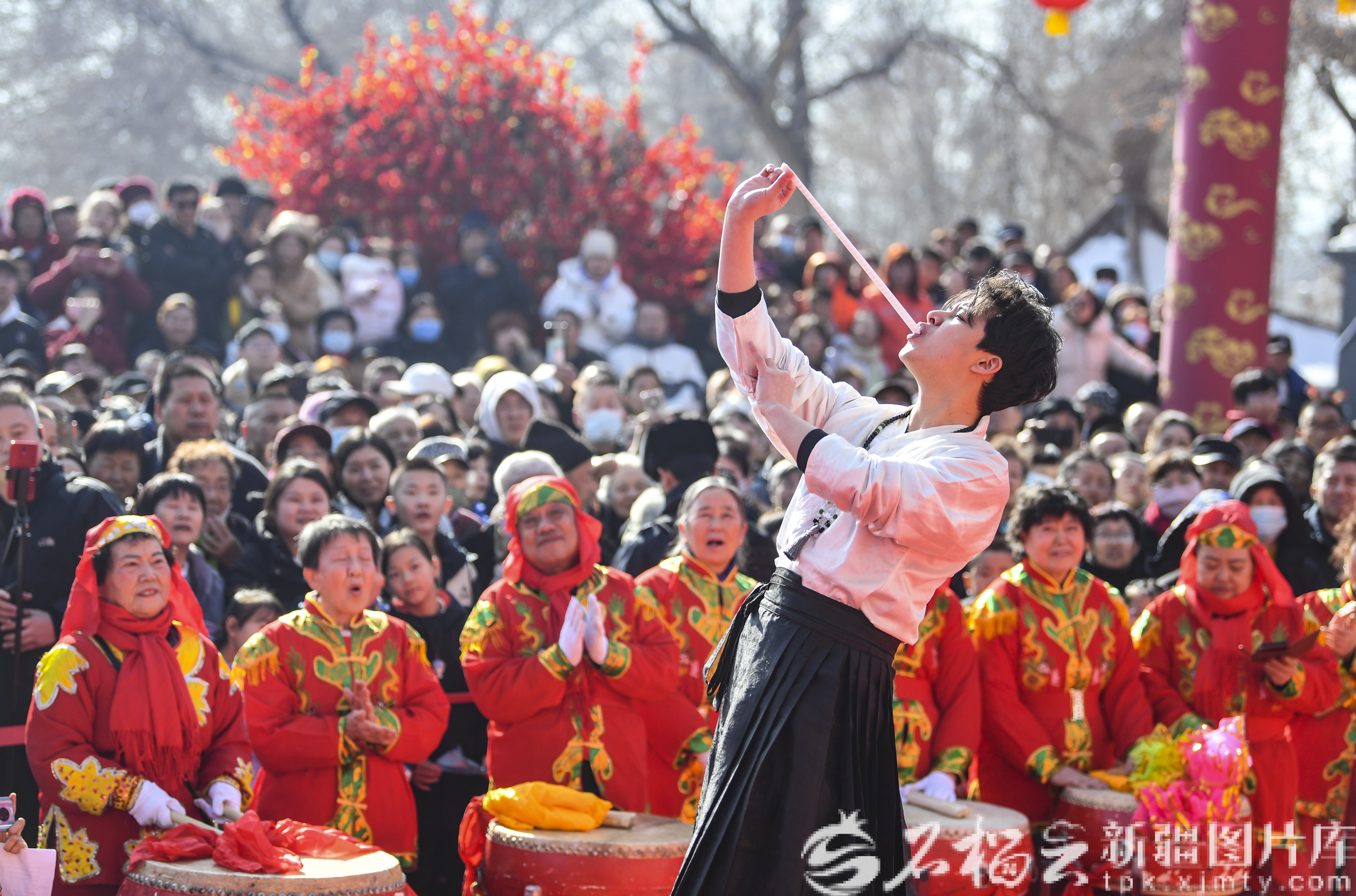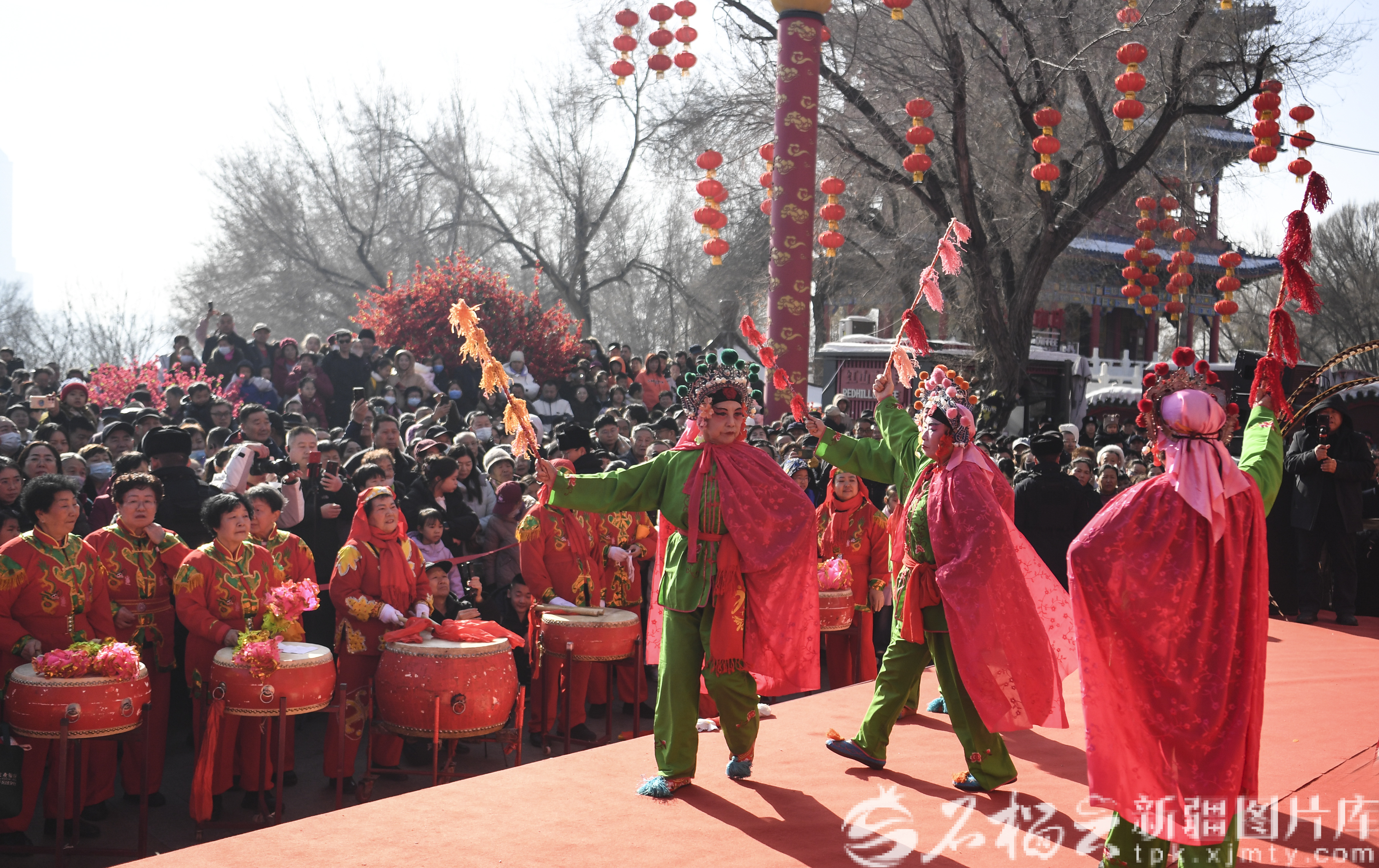 2月18日,演员在乌鲁木齐市红山公园第九届新春文化庙会为市民表演戏曲。石榴云/新疆日报记者 汤永摄