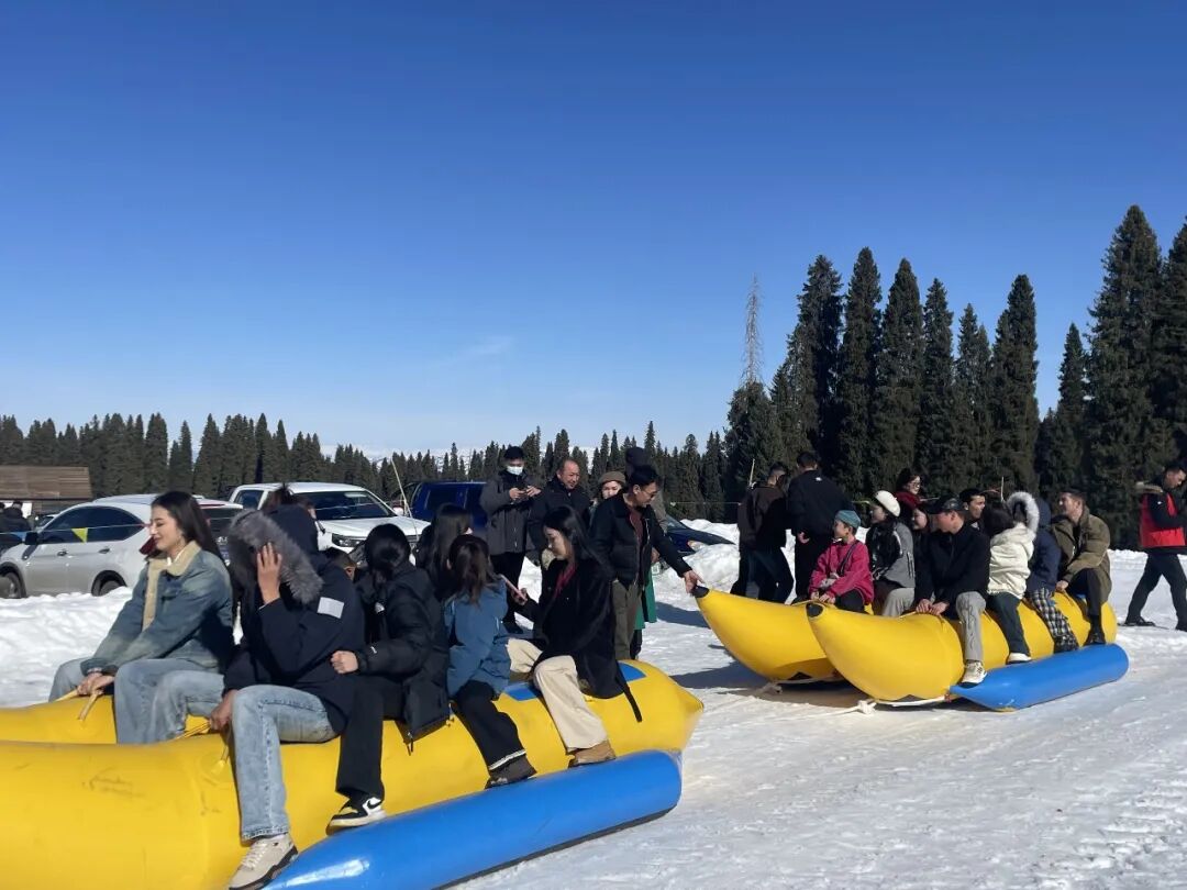 游客们在体验雪地游乐项目。
