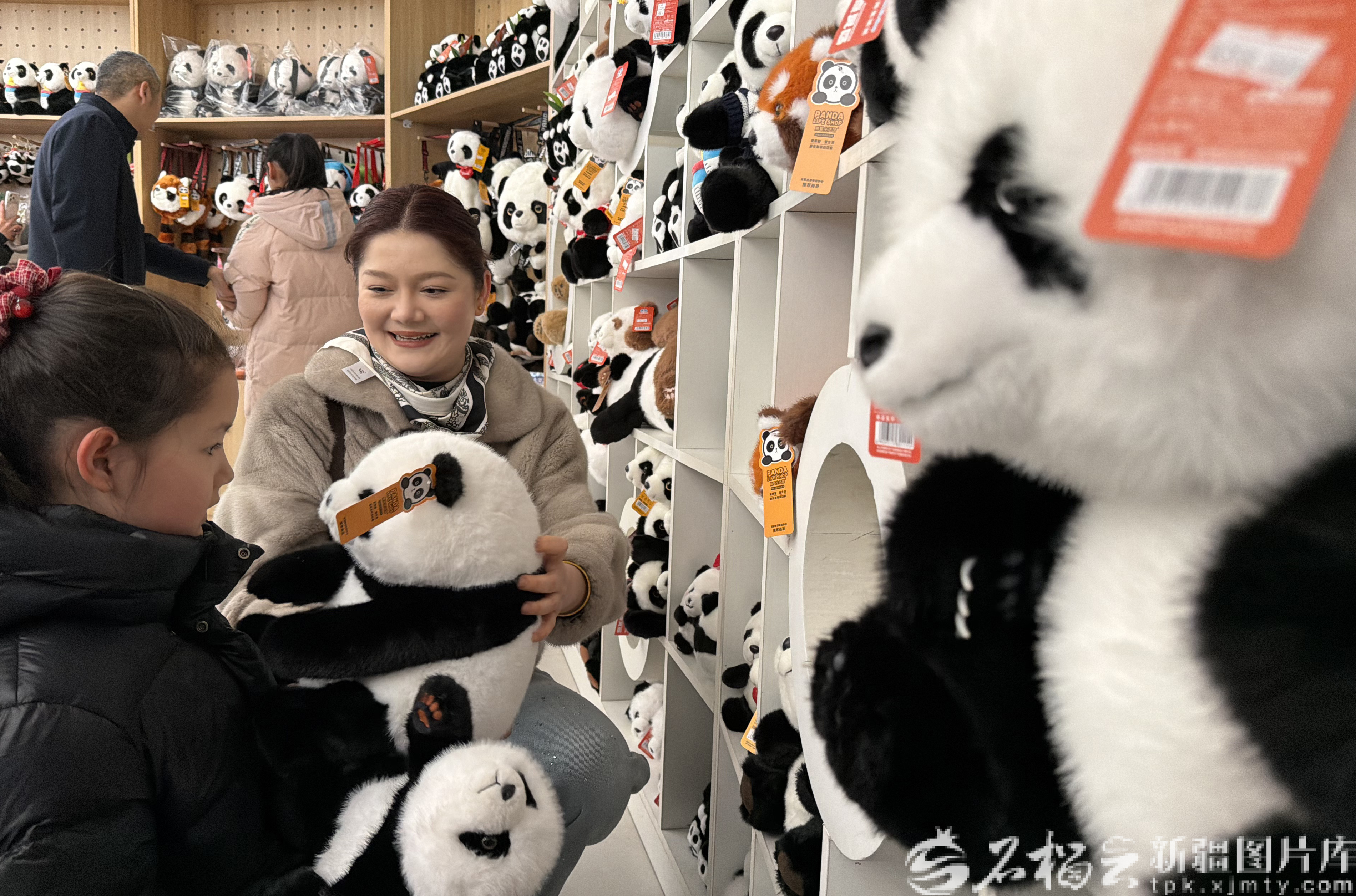 2月19日,市民在水上乐园大熊猫馆选购纪念品。