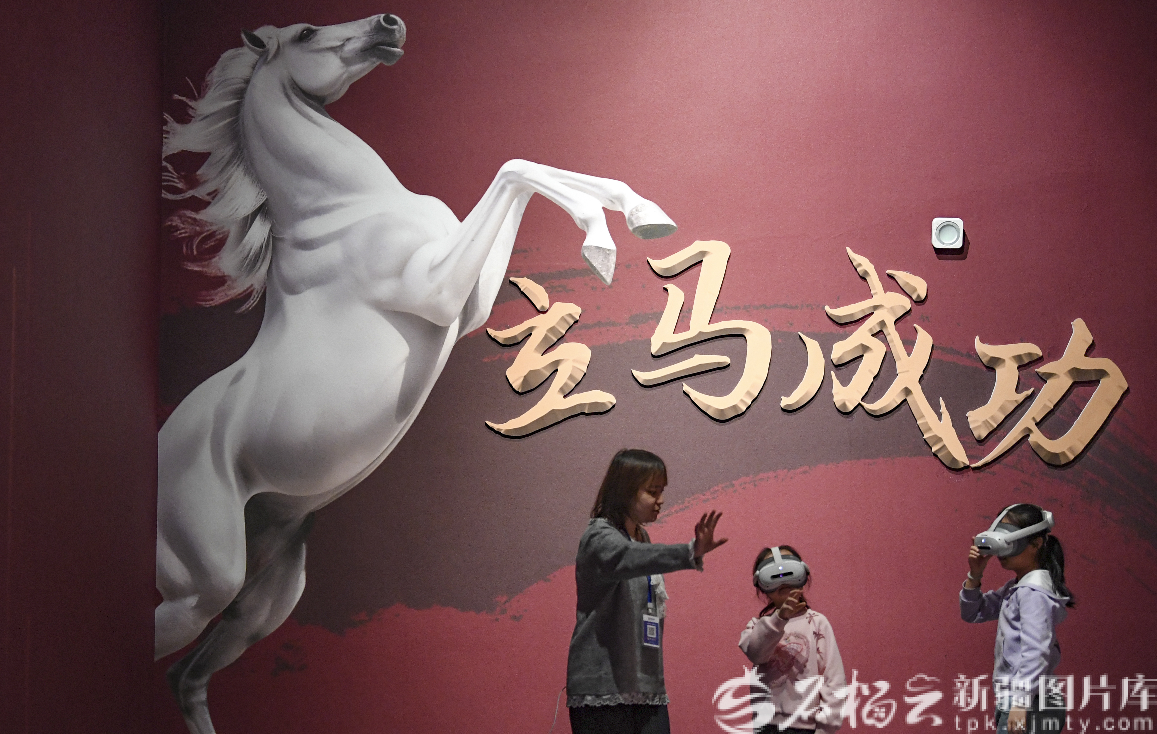 2月20日,小朋友在乌鲁木齐市博物馆通过AI眼镜观赏骏马风采。