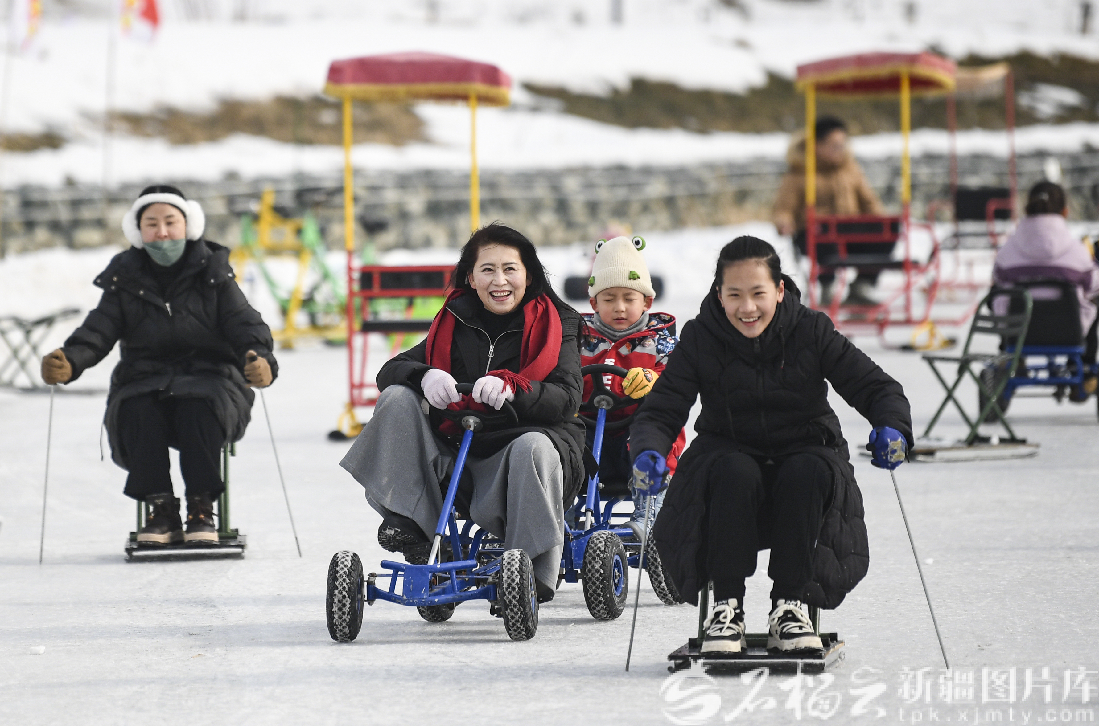 2月20日,市民在乌鲁木齐文化公园滑爬犁。