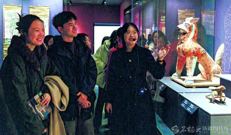 2月20日,新疆博物馆讲解员为游客作讲解。新春佳节,面对客流高峰,博物馆工作人员做好各项服务保障工作。□阮剑锋摄