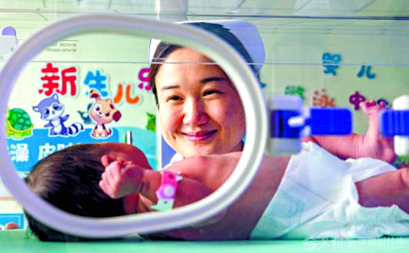 2月20日,乌鲁木齐市米东区中医医院护士照看新生儿。 □孙振嵩摄