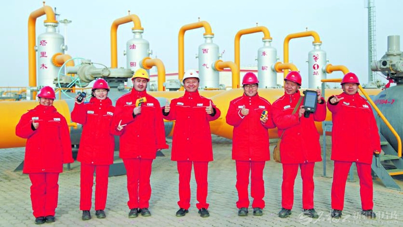 2月20日,中石油塔里木油田公司轮南油气储运中心西气东输第一站员工巡检后拍照留念。 □谭明明摄
