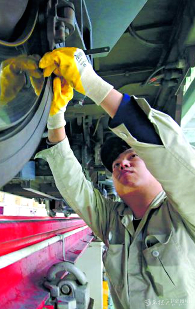 2月20日,中国铁路乌鲁木齐局集团有限公司乌鲁木齐车辆段动车片区,机械师检修车辆,保障旅客安全出行。 □郑敏摄