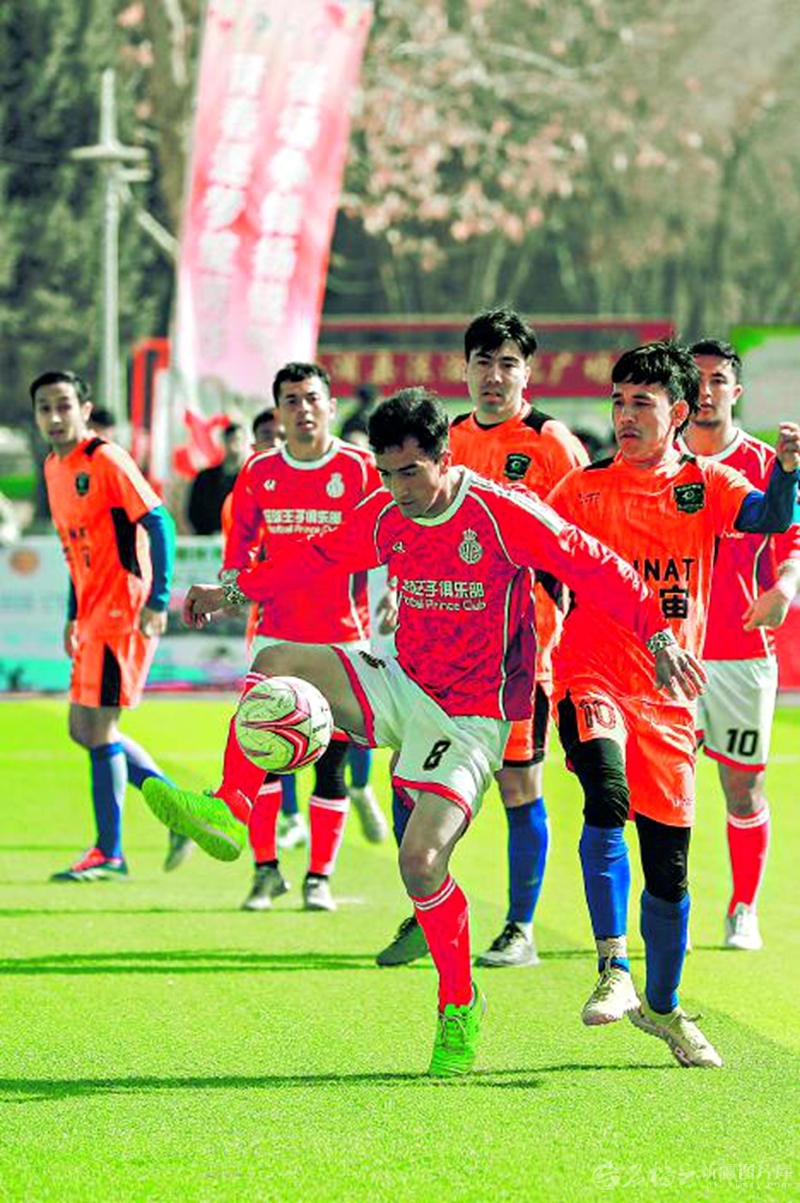 2月19日,洛浦县2026年“石榴籽·昆冈杯”新春足球友谊赛开赛,球员们在绿茵场上一展风采,赢得现场观众阵阵掌声。 买买提艾力·艾尼瓦尔摄
