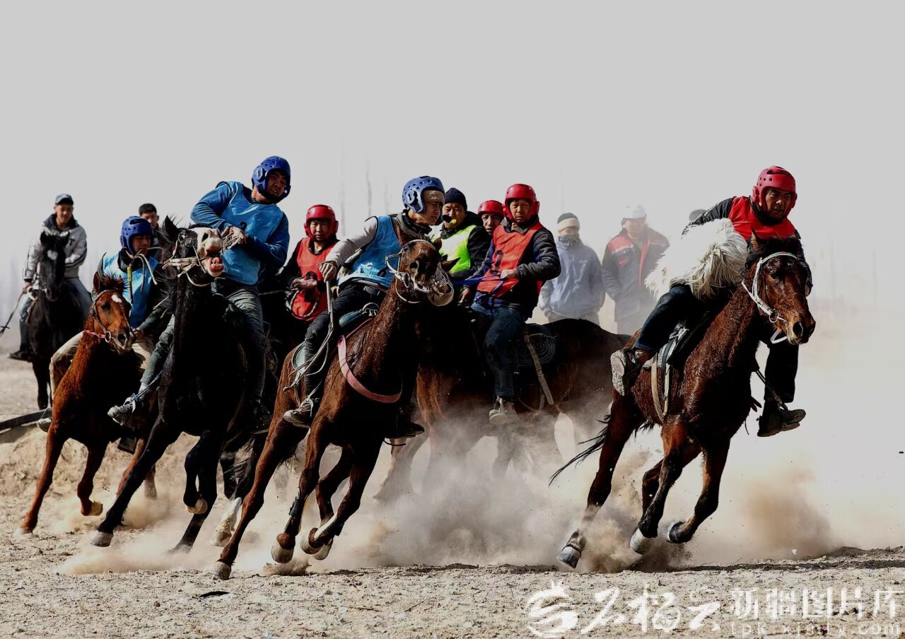 2月23日,库尔勒市和什力克乡刁羊比赛正在激烈进行中。秦爱霞摄