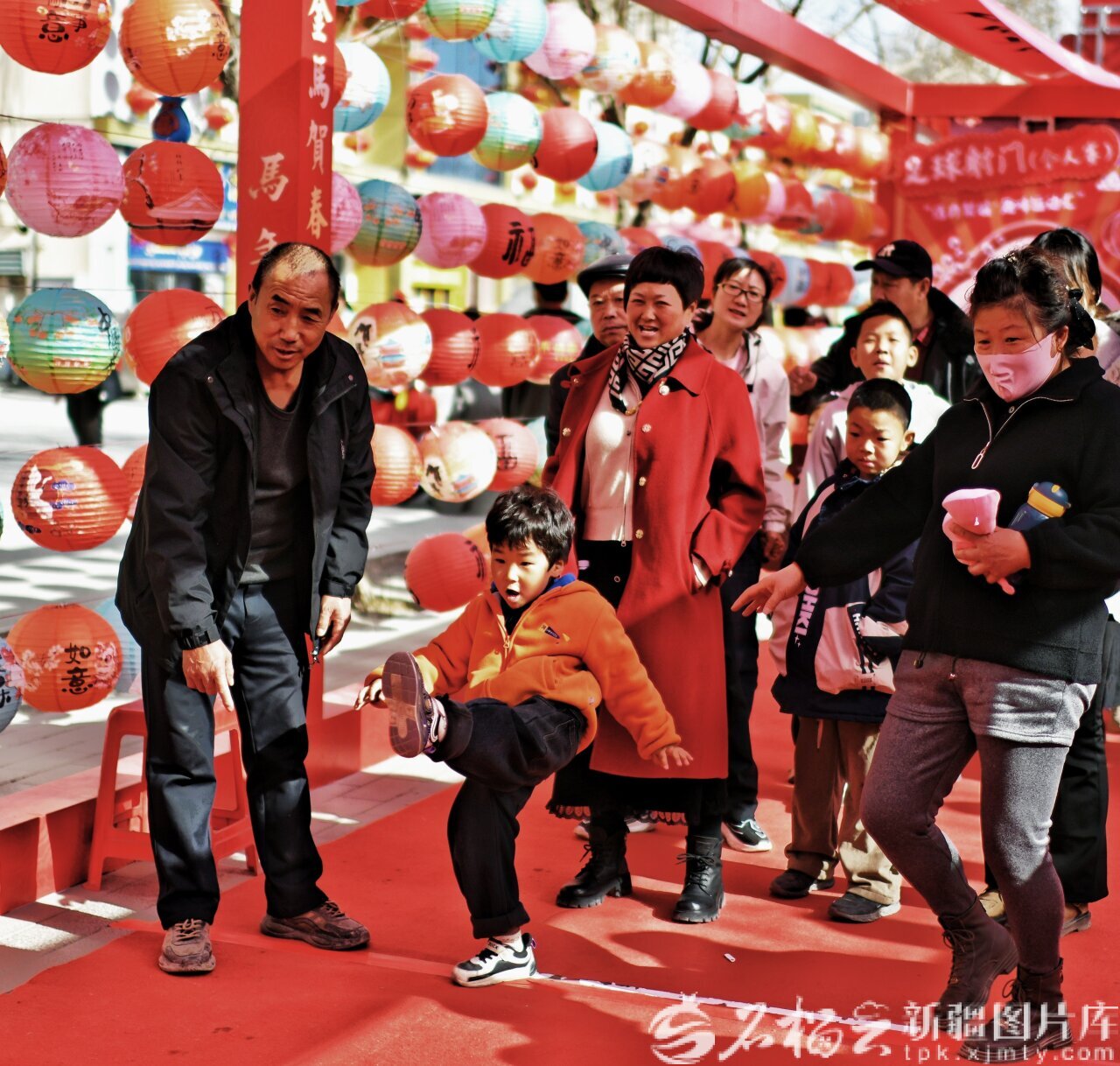 2月22日,游客在库尔勒梨城美食街玩踢足球游戏。石榴云/新疆日报记者 王立华摄