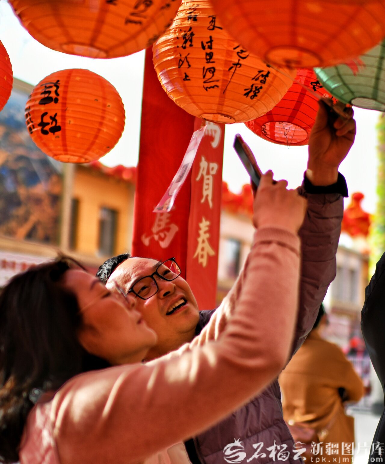 2月22日,库尔勒梨城美食街,游客在猜灯谜。石榴云/新疆日报记者 王立华摄
