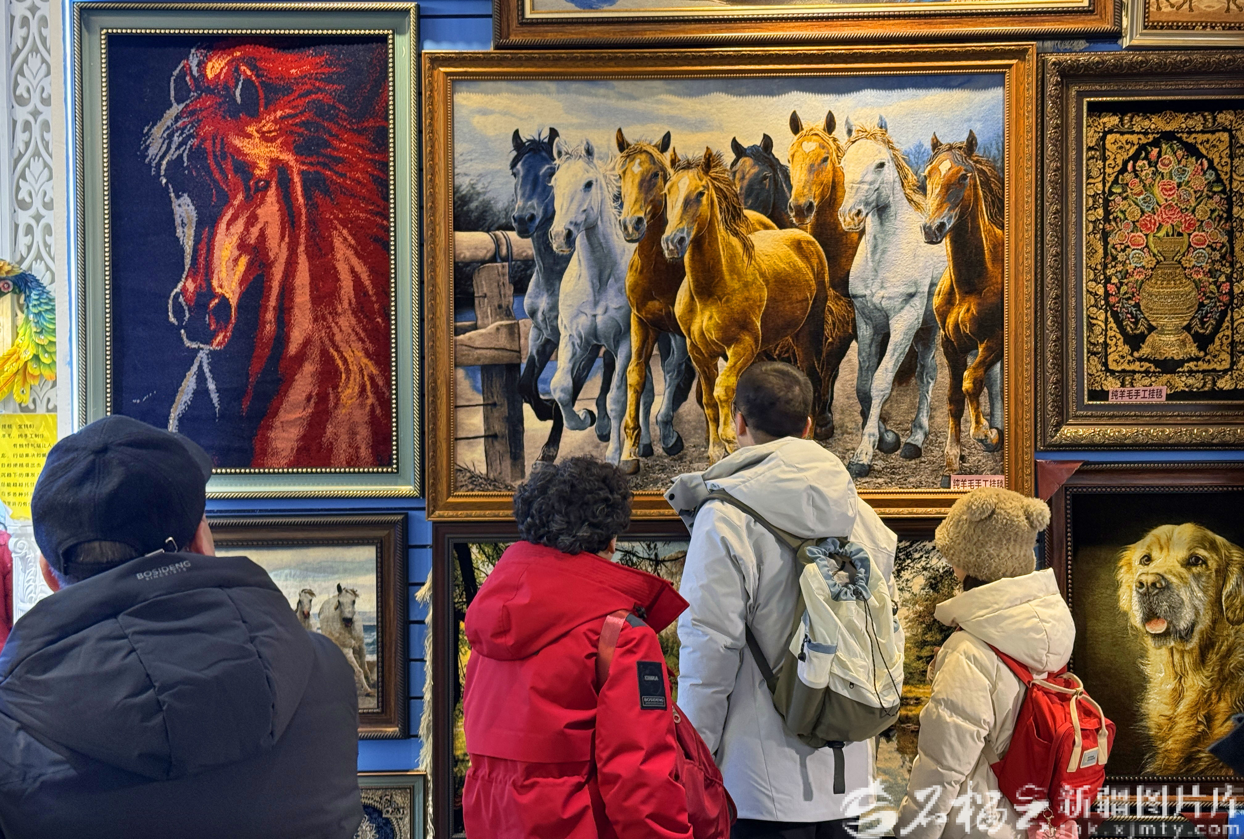 2月23日,游客在乌鲁木齐大巴扎步行街二期·疆来城选购挂毯。