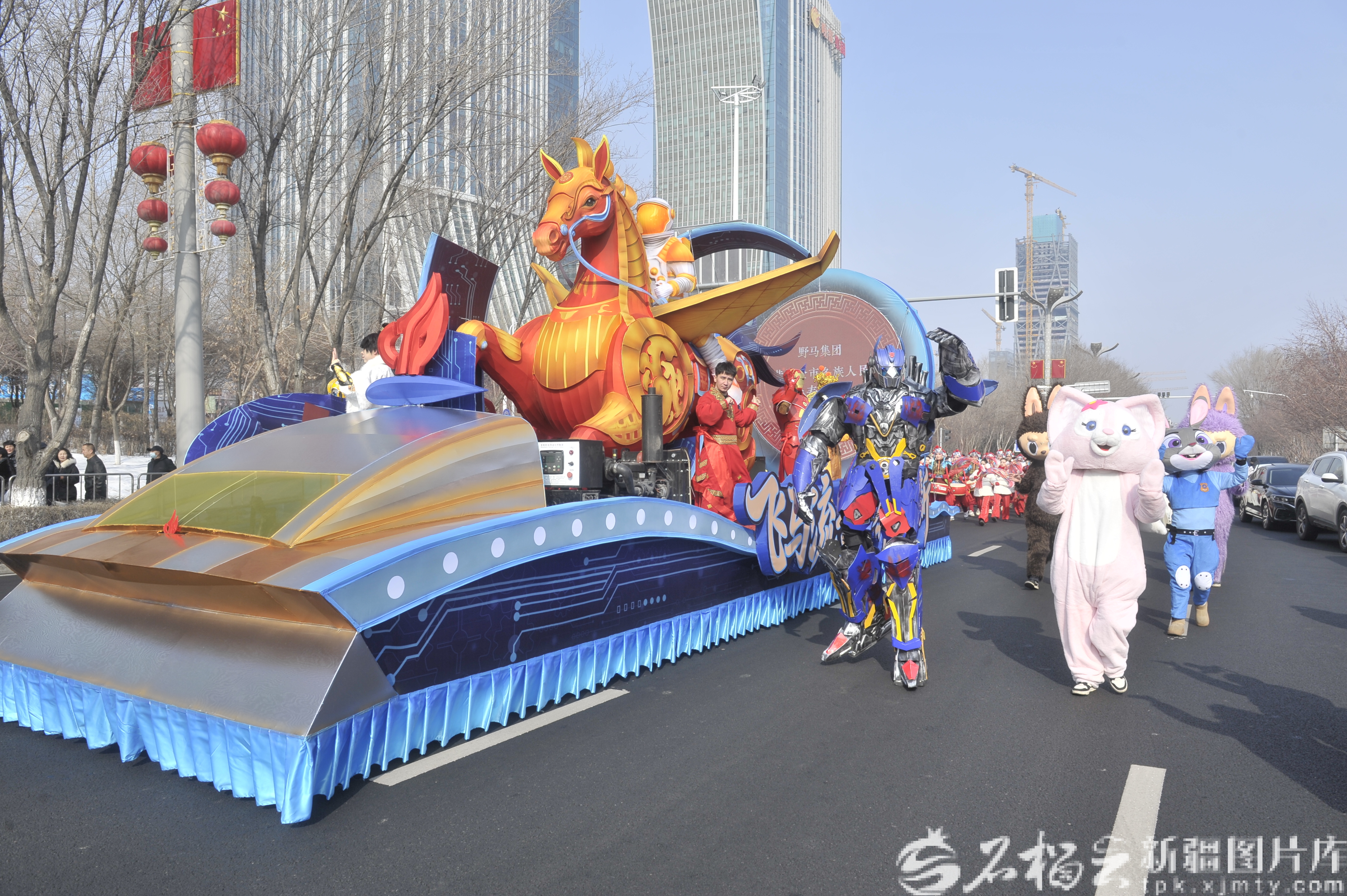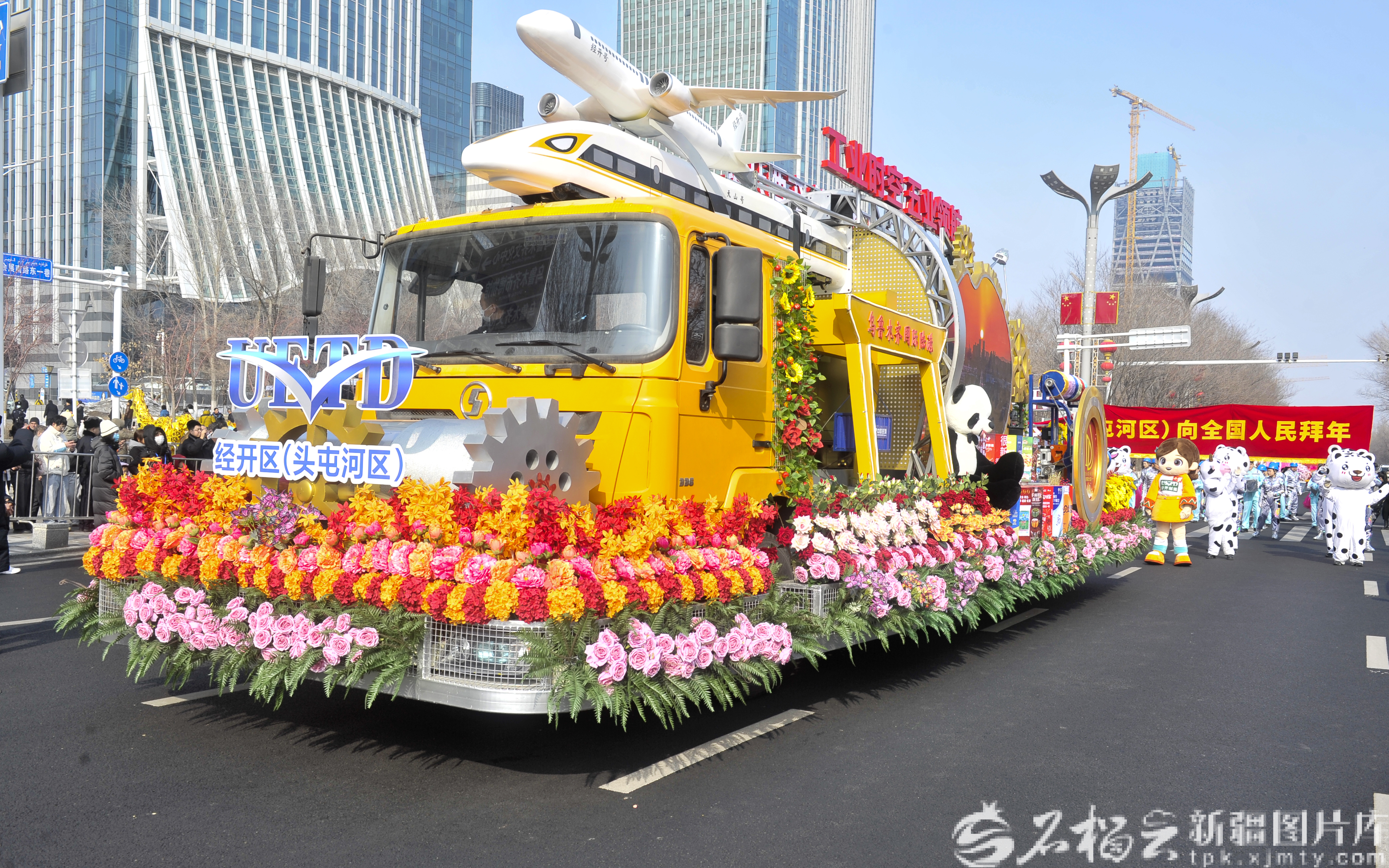 2月26日,主题花车依次巡游,成为乌鲁木齐街头亮眼的风景。
