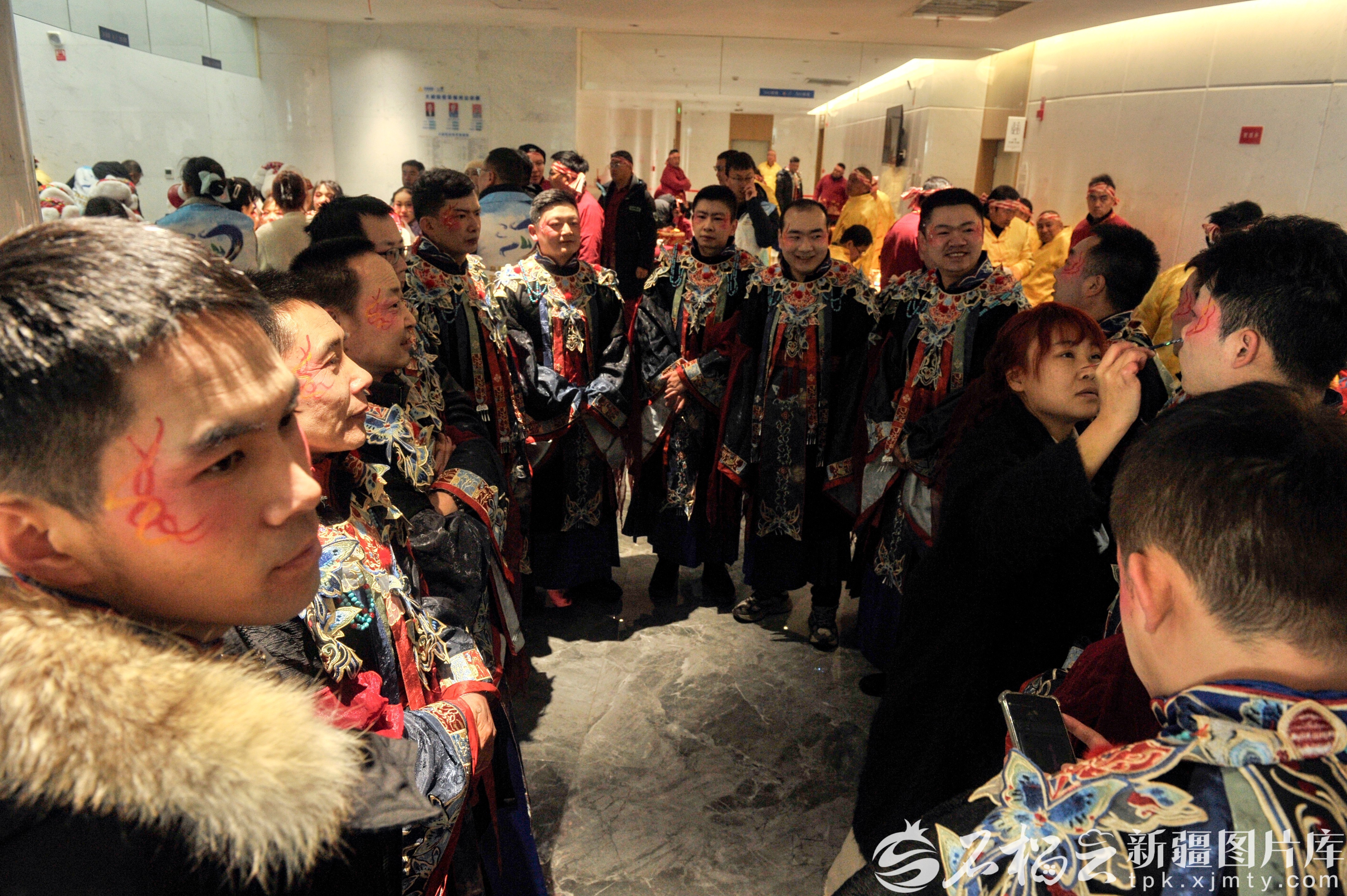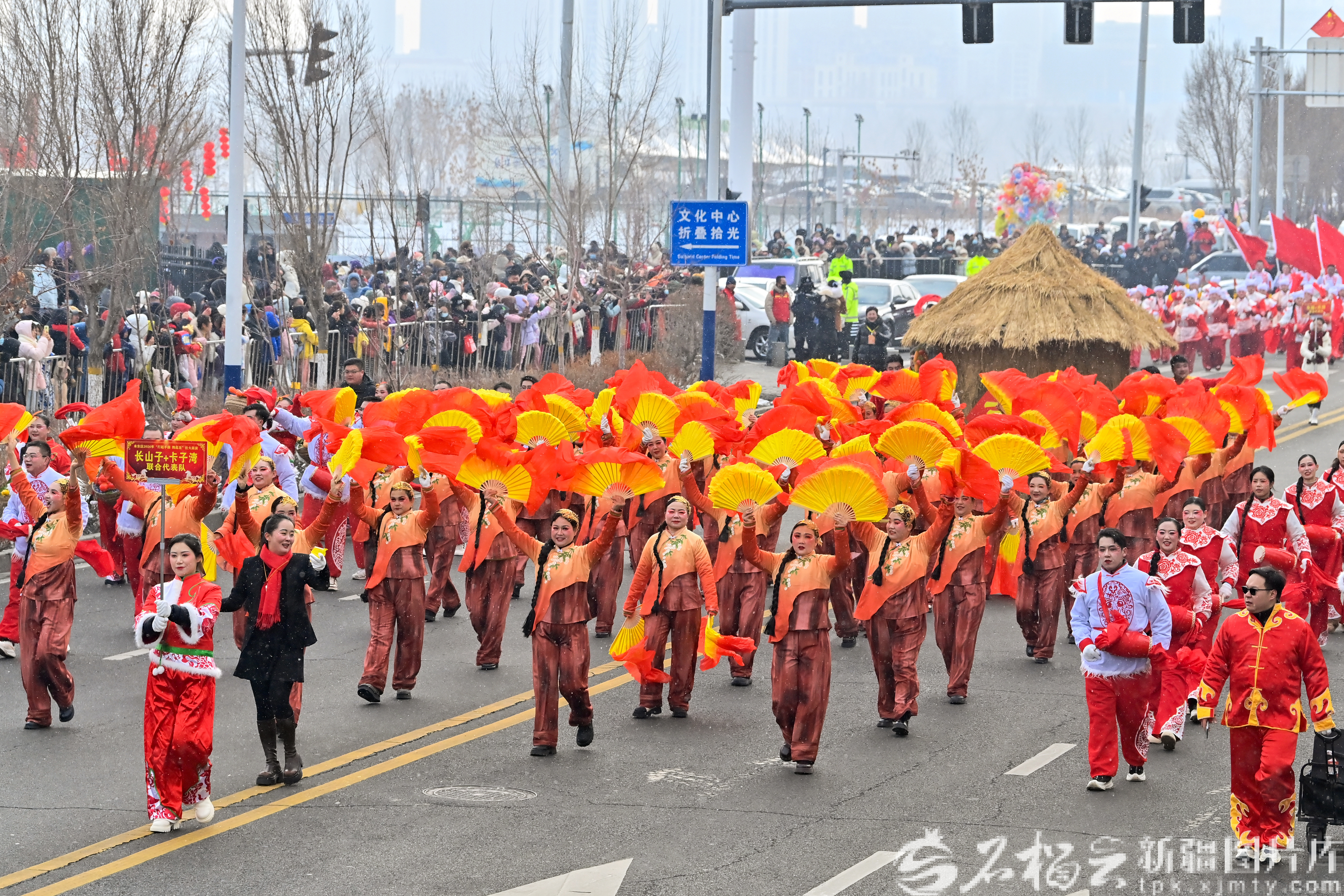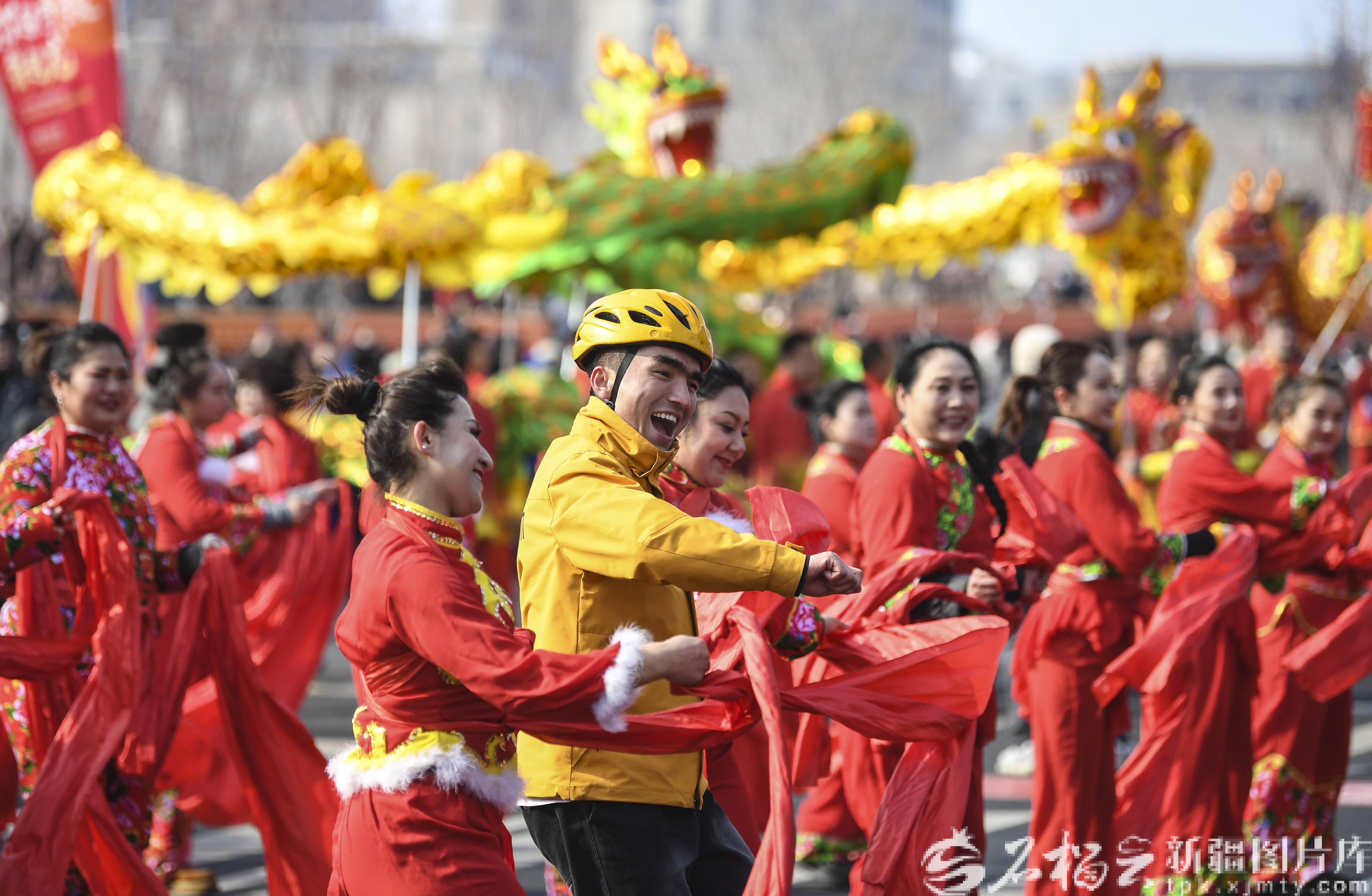 2月26日,来自新疆生产建设兵团第十三师的秧歌队在表演社火。