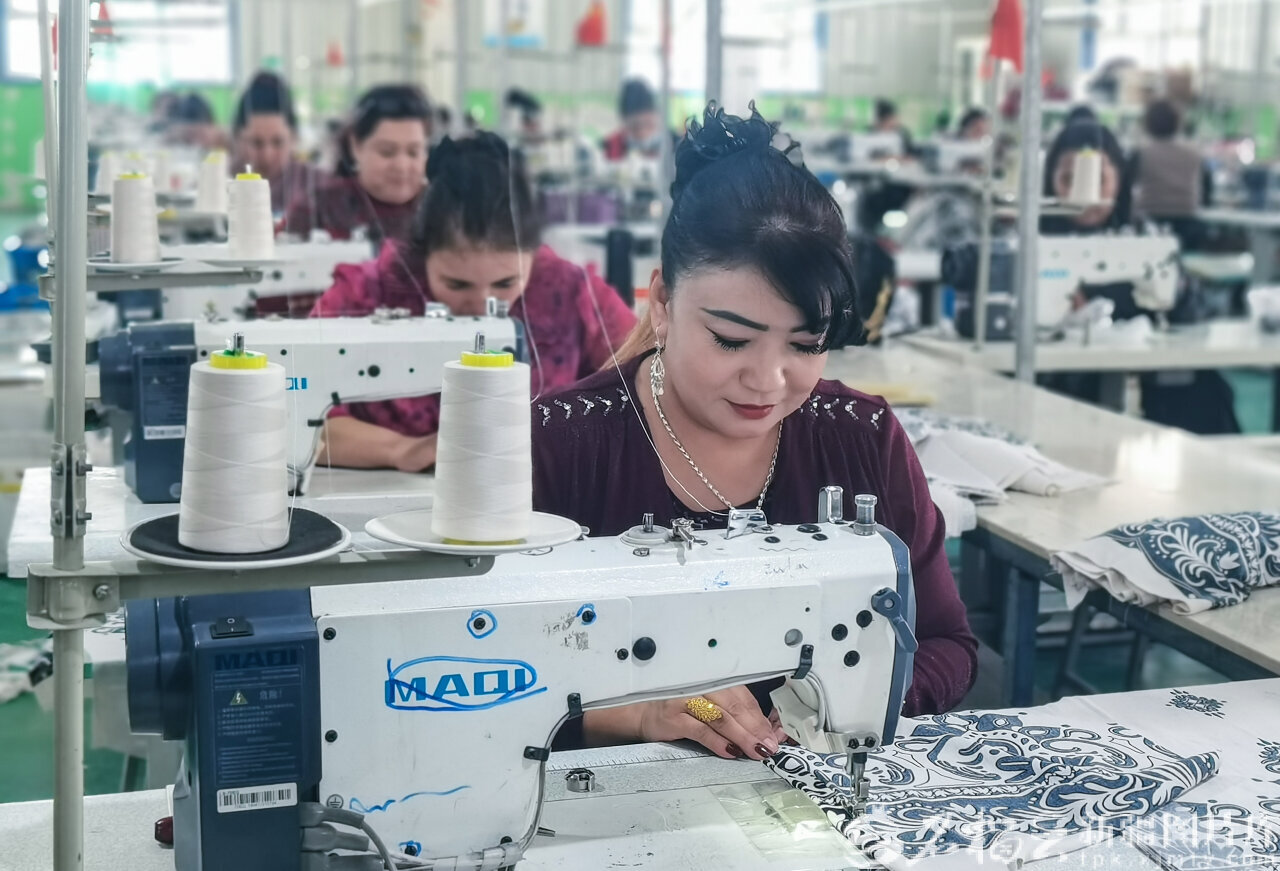 2月24日,位于泽普县的新疆聚盈服饰有限责任公司加工车间,员工正在赶制来自疆内外的女士衬衫订单产品。王华贤摄