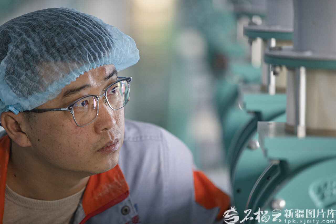 2月25日,在位于奇台县的新疆新粮华麦面粉有限责任公司筛理车间,工作人员对设备进行巡检,确保企业节后安全稳产。巨海成摄