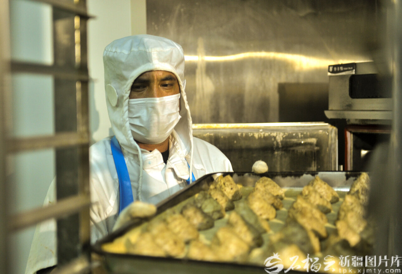 2月25日,位于乌鲁木齐高新技术产业开发区(新市区)的一家食品企业员工在搬运刚做好的油塔子。春节假期过后,该园区食品、药品企业已陆续开工生产。石榴云/新疆日报记者 王禹摄