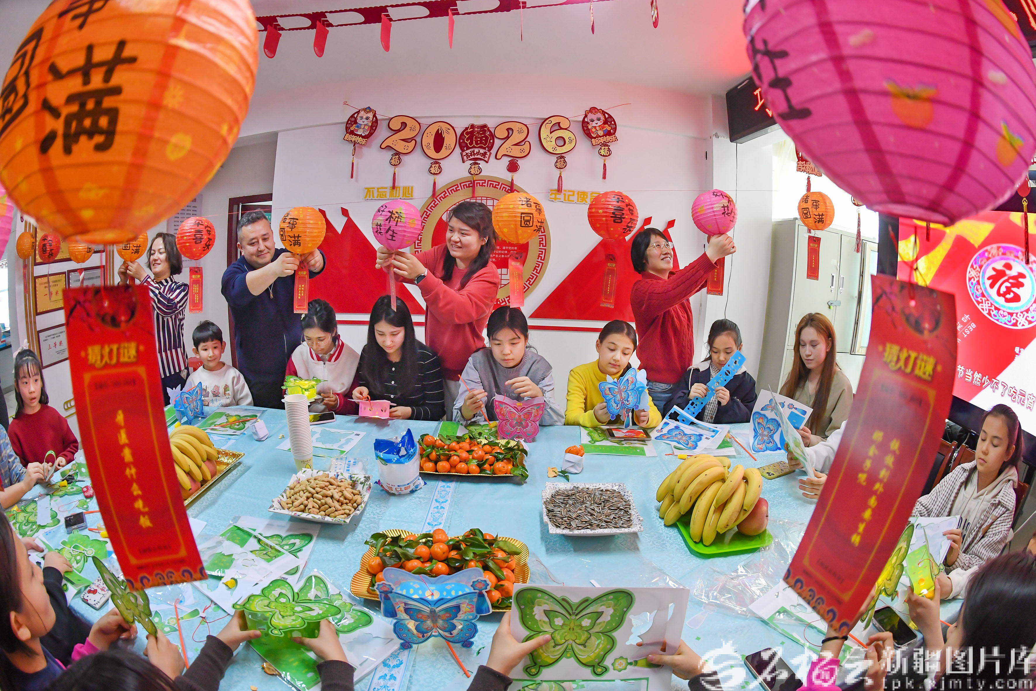 2月28日,乌鲁木齐市天山区南湾街街道大湾北社区活动室红灯笼高挂,“欢乐闹元宵・团圆共此时” 活动热闹开场。图为小朋友们制作花灯。石榴云/新疆日报记者 约提克尔·尼加提摄