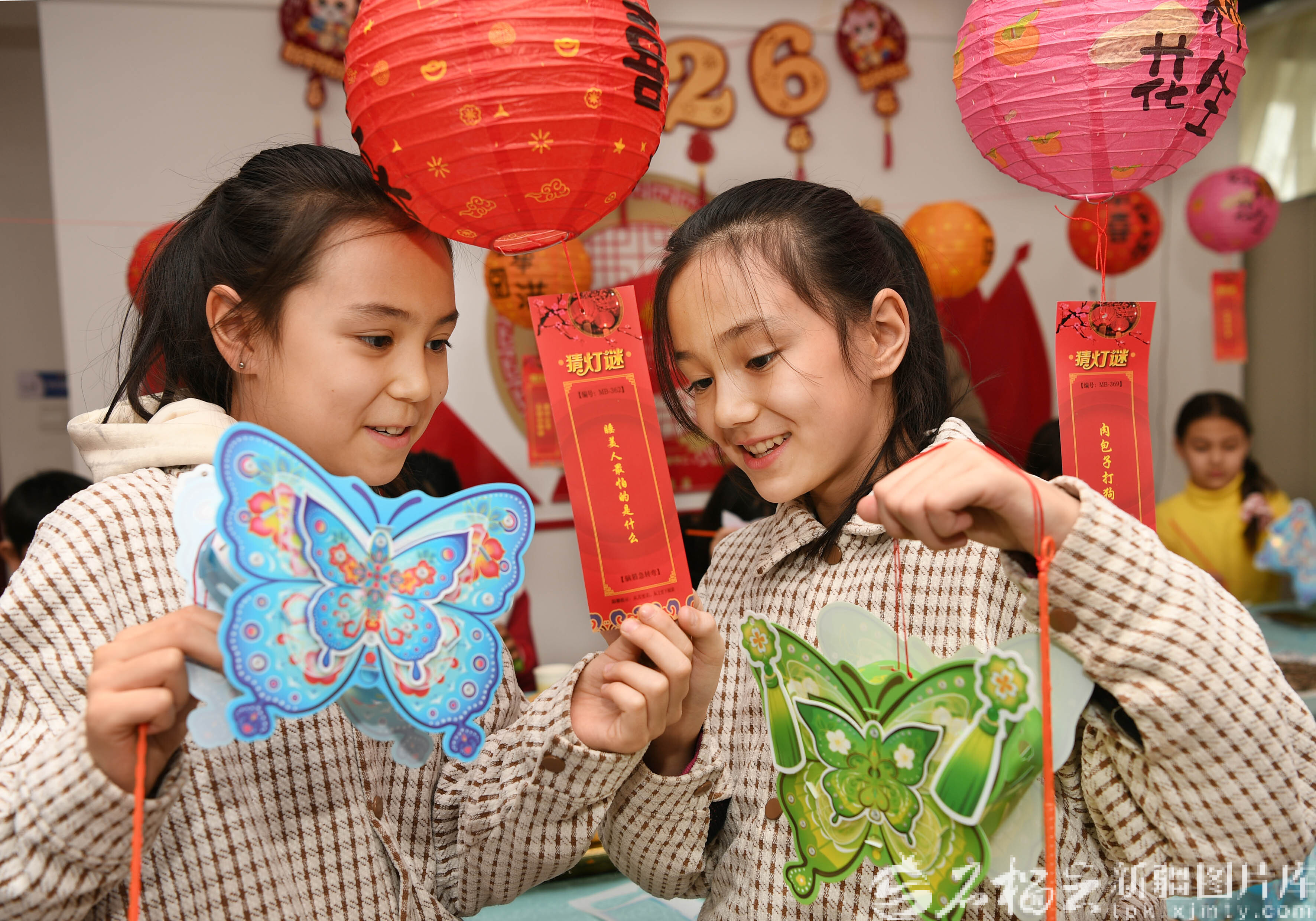 2月28日,小朋友们在乌鲁木齐市天山区南湾街街道大湾北社区开展的“欢乐闹元宵・团圆共此时”活动现场猜灯谜。石榴云/新疆日报记者 约提克尔·尼加提摄
